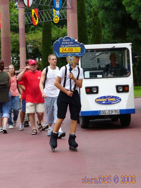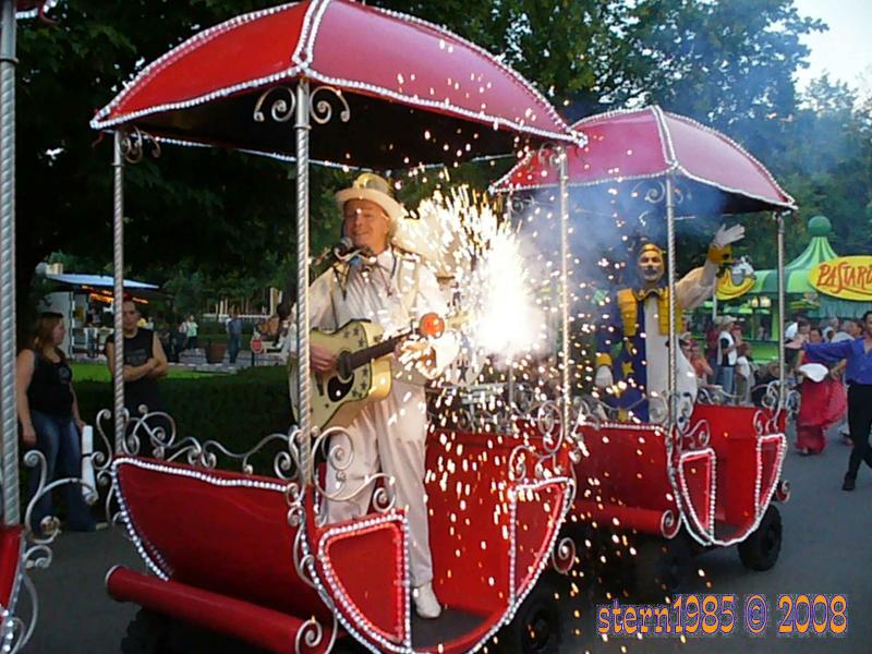 |  |  | Fanbericht von stern1985Sommernachtsöffnung, Pirates? Beachparty, IWS und südafrikanische WochenDatum: 03.08.2008Ersteller: stern1985 Weitere Personen: zucki77 Nach einem endlosen Monat voller Entzugserscheinungen, ging es wieder los. Am 24.7.08 um 5.30 Uhr traten wir mit voll gepacktem Auto unseren 6-Tages-Besuch im EP an. Endlich um 9.00 Uhr in unserer Ferienwohnung in Mahlberg angekommen, schleppten wir schnell unsere Koffer in die kühle Souterrain-Einliegerwohnung und waren um 9.45 Uhr endlich im Park. Tja, da 15 von 16 (Bundes-)Länder Ferien hatten, war es an diesem hei?en Tag natürlich auch voll, Menschen soweit das Auge reichte ? wie zu erwarten. Vieles konnten wir an diesem Tag daher nicht fahren. Wir schauten die Magic Bubble Show im Globe Theater sagten allen ?HALLO? und sahen uns selbstverständlich die Parade an. Hier ein gro?es Lob an die Künstler, die sich auch bei solchen Temperaturen (34-36°C) in die Kostüme ?zwängen? um uns zu unterhalten ? DANKE!!!!! Gegen 15.30 Uhr verlie?en wir dann den Park. Schnell noch etwas eingekauft um den Kühlschrank in der FeWo zu füllen bevor es ans auspacken ging. Am Freitagmorgen (25.7.08) ging es pünktlich um 9.00 Uhr in den Park. Aus gesundheitlichen Gründen sollten die nächsten Tage eher ruhig und sachte verlaufen. Zwischen langen Anstehzeiten und relaxen an schattigen Plätzen, kühlten wir uns immer wieder in England auf dem Wasserweg ein wenig ab, so dass der Tag schnell vorbei war. Endlich, der lang ersehnte Samstag (26.7.08) war gekommen. Wir entschlossen uns, den Tag gemütlich anzufangen und so schliefen wir erstmal richtig aus. Gegen 16 Uhr ging es dann in den Park. Auf dem Weg nach Italien trafen wir schon einige Fans mit denen wir kurz plauderten (Viele Grü?e an dieser Stelle an Hartmut [oetzi]und Familie). Zum Glück schien die Sonne an diesem Tag nicht so heftig jedoch war es immer noch tropisch. Schnell noch im Bamboe Baii vorbei geschaut und einen Tisch für die südafrikanischen Wochen am Montag reserviert. Nachdem wir um 20.00 Uhr die Parade schauten ging es gleich auf die EuroMir wo wir auch zügig dran kamen. Und schlie?lich machten wir uns auf zur Beachparty. >Hier viele Grü?e an die zivile Euromausine!< Um 21.00 Uhr konnten wir ?Lady Anja?s Schlangenshow? und gleich danach den ?Salsa Club Lahr? bewundern. Um 21.30 Uhr legte dann die Piratenstuntshow los. Einfach Wahnsinn wie die Künstler in den Atlantica-Booten den Berg stehend herunter gefahren sind ? RESPEKT!!! Die Show war einfach fantastisch! Gemeinsam mit Oliver (oe2211968) und seiner Familie fuhren wir noch Atlantica und Vindjammer bevor sich unsere Wege trennten. Wir machten uns dann Richtung Fjord Rafting auf und gleich danach um 23.00 Uhr das super gelungene Feuerwerk anzuschauen. Beim Warten auf den EP Express, so um 00:40 Uhr, kam es zu einem kleinen Vorfall auf dem Partygelände, als ein ?GAST? ? da er keinen Alkoholnachschub mehr bekam, seinen Frust an div. Einrichtungsgegenständen des EP auslie? und freundlich aber bestimmt Heimgeschickt wurde. Um 1 Uhr kam dann auch endlich der EP Express in die spanische Station gefahren und wir konnten dann unseren Heimweg in die FeWo antreten. Am Sonntag (27.7.08) hie? es dann für uns um 9.00 Uhr auf zu ?Immer wieder Sonntags?. Bereits um kurz nach 9.00 Uhr waren fast alle Plätze belegt. Obwohl das nicht gerade unser Musikgeschmack ist, war es interessant bei einer LIVE-Sendung zu zusehen. Pünktlich um 11.30 Uhr Park verlie?en wir das IWS-Gelände bei Griechenland und liefen direkt dem Ruster Fanfarenzug über den Weg. Nach einen ruhigen hei?en Nachmittag war auch dieser Tag wieder vorbei. Am Montag (28.7.08) freuten wir schon auf die südafrikanischen Wochen. Da es wieder sehr hei? wurde und der Park aller Wahrscheinlichkeit nach wieder voll wird, entschlossen wir uns, erst am Nachmittag in den Park zu fahren. Schnell ein paar Runden auf der EuroSat, EuroMir und Co (Anstehzeiten lagen im Bereich von 30-45 min.) waren wir dann schon um kurz nach 19.00 Uhr in Holland. Dort klapperten wir dann die Fahrgeschäfte ab und beim Warten auf unseren Tisch im Bamboe Baai sprachen wir noch kurz mit Herrn Schulthess. Erst sah es so aus als würden nicht viele Leute kommen, da alle Richtung Ausgang unterwegs waren. Als wir dann um 20 Uhr im Bamboe Baai an unserem Tisch platz genommen haben war es schon sehr voll. Die Tische waren liebevoll gedeckt und wir hatten einen Tisch direkt an der Fahrrinne. Vorab wurde ein bisschen Brot mit einer Art Erdnusscreme gereicht. Nach einer kurzen südafrikanischen Musikeinlage haben wir uns endlich entscheiden können, was wir bestellen. Als Vorspeise gab es bei uns ?Gebackene Shrimps im Reisteig mit einem Chuntney von Karotten und Ananas?. Das Hauptgericht war zum einen ein ?Saftiges Strau?ensteak mit Cranberries, einer Sauce von Merlot und Balsamico dazu Sü?kartoffelpüree? und zum anderen ein ?Rinderhüftsteak mit Gewürzen vom Kap mit einer Baked Potato und Sour Cream?. Alles sehr, sehr lecker!! Zwischen durch führte Ulrich Grawunder (unter anderem zuständiger der Parade) ein kurzes ?Interview? mit Cass Abrahams. Auch kleine Tanzeinlagen wurden auf der Bühne dargeboten. Neben Claudio Schulthess und Ulrich Grawunder waren natürlich auch Michael, Thomas und Roland Mack vertreten. Hier hat mal wieder das ganze EP-Team ein super tolles Event auf die Beine gestellt. Der Rückweg gestaltete sich jedoch etwas schwierig, denn alle Wege zum Haupteingang waren natürlich um 22 Uhr versperrt. Also dachten wir uns, mit dem EP Express von Spanien aus zum Haupteingang zu fahren. An der spanischen Station angekommen, war diese verschlossen und dunkel. Gut, dann also ins El Andaluz und an der Rezeption nachgefragt. Dort wurde uns sofort geholfen und wir konnten dann nach kurzem klingeln und langem warten an der Colosseo Station einsteigen. So ging ein schöner Abend zu Ende. Unser letzter Tag (29.7.08) war nun gekommen. Nach dem wir die FeWo leer geräumt haben ?NAT?RLICH 