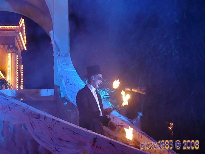 |  |  | Fanbericht von stern1985Sarah & Marc ? Crazy in Love, Dreharbeiten mit einer ?berraschung!Datum: 13.08.2008 - 14.08.2008Ersteller: stern1985 Weitere Personen: zucki77 Wie in unserem letzten Bericht erwähnt, lud Marc Terenzi alle zu den Dreharbeiten zu ?Sarah an Marc ? Crazy in Love? ein. Daher nahmen wir kurzerhand Urlaub und fuhren am Mittwochnachmittag (13.8.2008) nach der Arbeit direkt nach Kappel-Grafenhausen, wo wir zum Glück noch kurzfristig ein Zimmer buchen konnten. Gegen 20.30 Uhr warteten wir nun vorm Haupteingang auf den Einlass. Nach und nach trafen immer mehr Leute ein. Während des Wartens sahen wir massenweise Besucher aus dem Park strömen. Und es wurden lange Zeit nicht weniger. Echt der Wahnsinn. Irgendwann tauchte ein Hubschrauber über dem Haupteingang auf und drehte ein paar Runden über uns. Später erfuhren wir, dass dies Sarah Connor war, welche auf dem Sportplatz neben an landete. Mit ein ?wenig? Verspätung ging es nun endlich los. Beim Passieren der Drehkreuze bekam jeder Besucher einen Gutschein für ein 0,5 L Softgetränk, welcher am Getränkestand neben dem Geisterschloss eingelöst werden konnte. Wir standen alle vorm Eingang Italien am Torbogen und warteten wieder. Der Torbogen war in ein super tolles Banner eingehüllt. Nach einer kurzen Ansprache von Michael Mack und Marc Terenzi, wo auch Sarahs Familie da war, ging es los. Ich fotografierte noch die toll gekleidete Euromaus, als ich mich umdrehte und in die Augen eines Zombies schaute. Ich traute meinen Augen nicht. Damit hatten wir nun wirklich nicht gerechnet ? gehofft ja!!! Wir waren wirklich bei der THN2-Preview dabei! Es war toll all die neuen und auch alt bekannten Charaktere als erster zu sehen. Das Geisterschloss, oder besser gesagt ?Black Wood Mansion? und der Speicher aus dem letzten Jahr, welcher dieses Jahr ?The Attic? hei?t hatten geöffnet. Etwas später gingen Michael, Sarah, Lulu, Marc und Familie/Freunde über den roten Teppich, selbstverständlich begleitet von Zombies und Killer-Clowns. Sarah und ihrer kleinen Schwester Lulu war das gar nicht geheuer ;o) Aber Marc hatte seinen Spass und beschütze natürlich seine Lieben vor den Gestalten die ihnen unterwegs auflauerten. Dann ging es für Sarah und Co mit dem Kamerateam im Schlepptau in ?The Attic? und wir schauten uns weiter im italienischen Themenbereich um. Dabei trafen wir auf allerlei Charaktere, die ihr Unwesen trieben und immer wieder im dichten Nebel verschwanden. Mit dabei waren auch die Neuen Wehrwölfe, die jedoch viel zu Zahm keine Zähne zeigen wollten ? schade! Dann ging es endlich los ins Variete wo Marc und seine Band ein 3-Lieder-Konzert gaben. Bevor es los ging, kamen Sarah und Ihre Familie durch den Seiteneingang und wurden durch die Menge auf Ihren Platz direkt vor der Bühne gebracht, wo ein kleiner Bereich abgesperrt war. Am Ende des Konzertes verkündete Marc, dass er erstmal in Deutschland bleiben wird und holte dazu Sarah auf die Bühne. Um ca. 1.15 machten wir uns auf den Heimweg in unser Gästezimmer. Wir hatten sehr viel Spass an diesem Abend und es wir die Zeit noch viel unerträglicher machen bis wir am 26. September endlich zu den Horror Nights 2 können!! Als Ausstrahlungstermin für die Aufnahmen der Finalfolge von S&M steht der 21. August ? viel Spass beim zusehen!! Am nächsten Morgen (14.8.2008) lie?en wir uns viel Zeit, da der Park ohnehin voll werden sollte.. Bei unserer Ankunft an diesem Tag so gegen 10.30, mussten wir schon in der vorletzten Reihe des Hauptparkplatzes I stehen. Direkt nach uns wurde er geschlossen und die anrollende Blechlawine auf den hinterm Parkplatz angrenzenden ?Acker? umgeleitet! Nachdem an diesem Tag sowieso nichts mehr laufen würde, schauten wir noch schnell die Eisshow und die Parade und machten uns dann auf nach Hause - bis zu den Spanischen Tagen (Spanische Feria)!!! Also, wir hoffen euch hat unser Bericht gefallen und wir wünschen euch viel Spass beim Fotos anschauen. Viele Grü?e Steffi und Markus