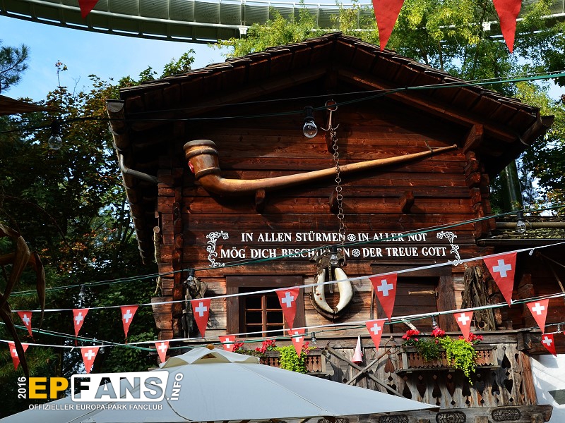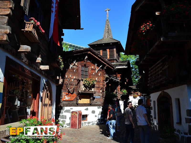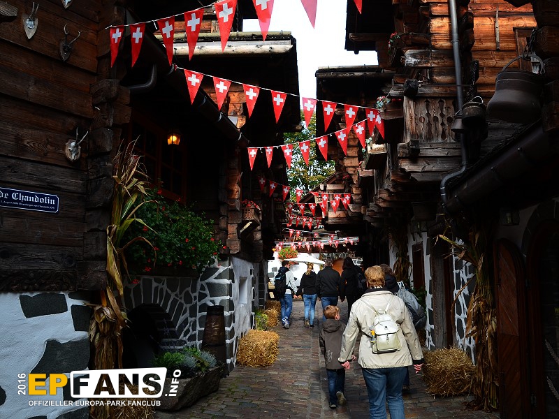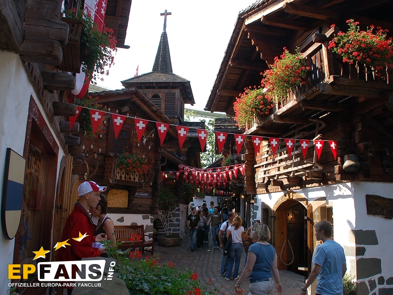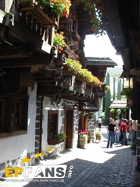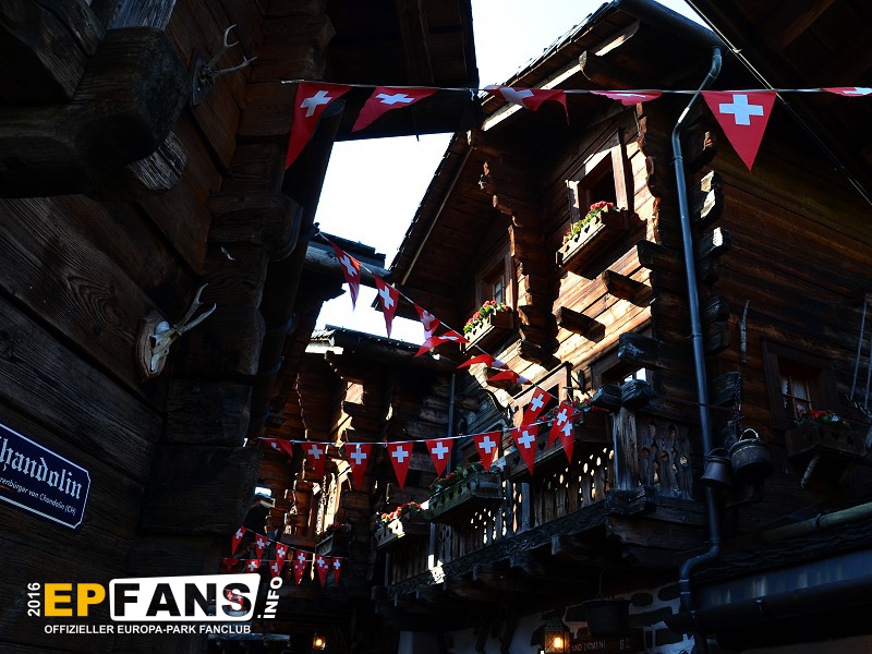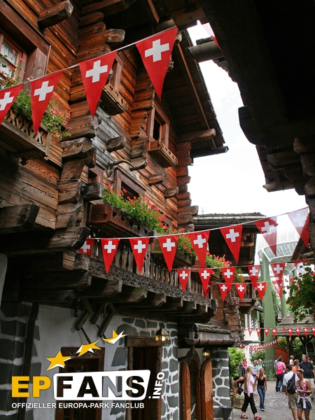 SchweizGrüezi miteinand! Willkommen in der Schweiz. Die herrlichen Holzhäuser (Chalets) mit ihren blumengeschmückten Balkonen und den urigen Schindeldächern bilden das romantische Walliser Dorf - Stilecht erbaut und liebevoll dekoriert. Und wirft man einen Blick nach oben, sieht man, wie einige Bobs der Schweizer Bobbahn über die Köpfe der Besucher hinwegrauscht.