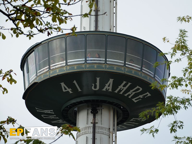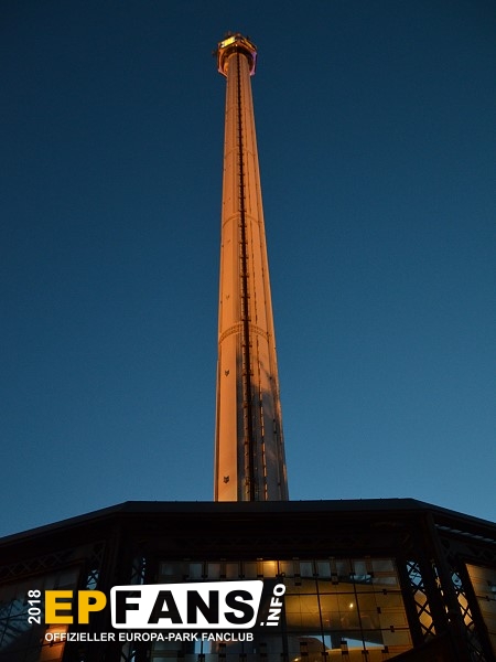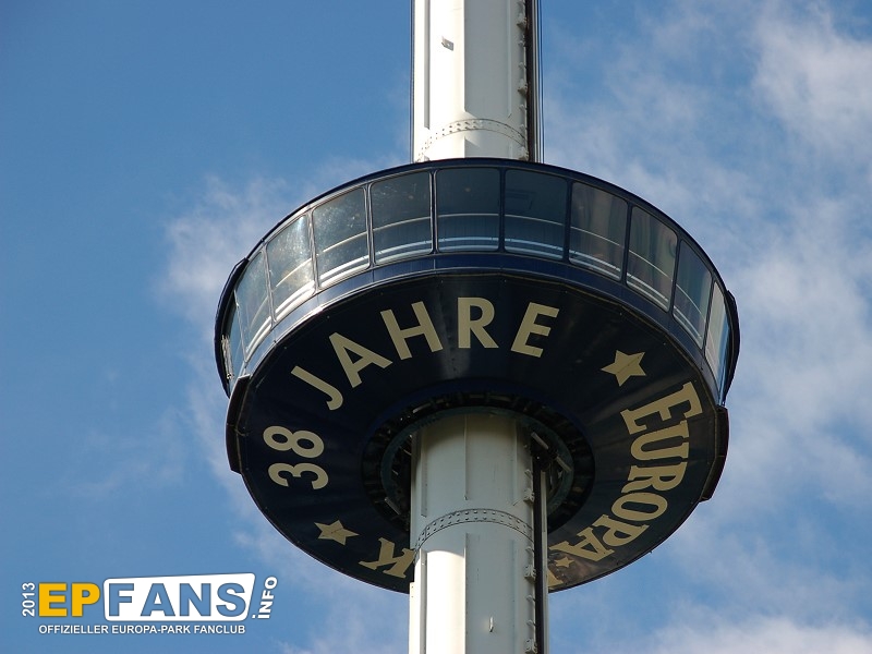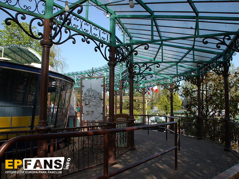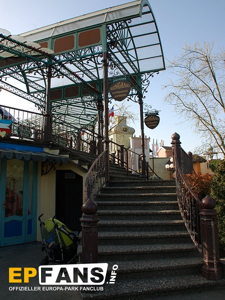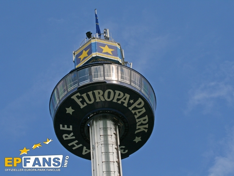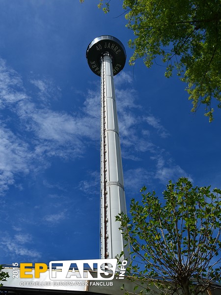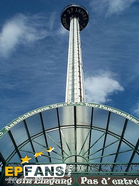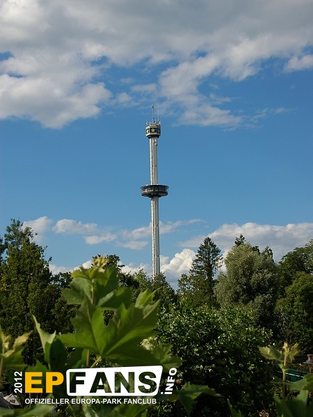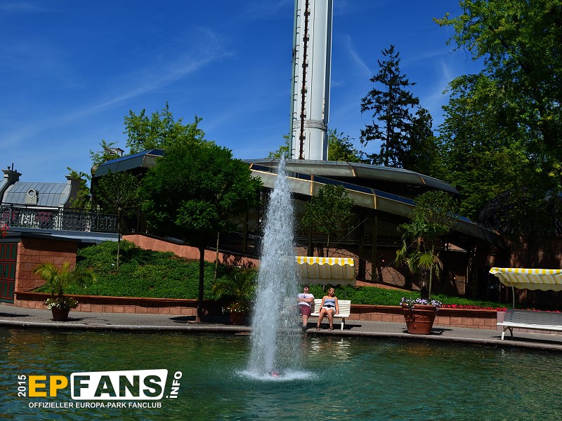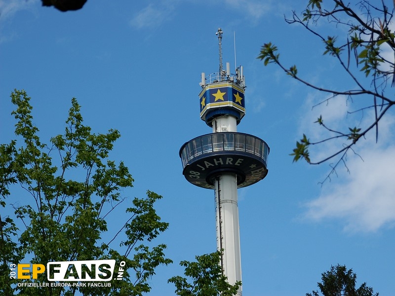 Euro-TowerFrankreich - Der Euro-Tower ist 75 m hoch und wurde von der Firma Intamin hergestellt. Bei diesem Turm fährt man wie in einem Fahrstuhl langsam nach oben. Während der Fahrt dreht sich die Gondel und somit bekommt man einen Rundblick über den Park sowie bei klarem Wetter eine herrliche Fernsicht auf den Schwarzwald und die Vogesen. Der Panorama-Aussichtsturm stand, bevor er 1983 im Europa-Park aufgebaut wurde, auf der Bundesgartenschau in Kassel und auf der "Grün" in Basel. 3 Jahre hat Roland Mack gebraucht, um die Genehmigung von den Behörden für diese Höhe zu bekommen. Der Turm hat eine stündliche Kapazität von 600 Personen und gehört zu den Wahrzeichen des Parks, da man ihn schon aus der Ferne sehen kann.