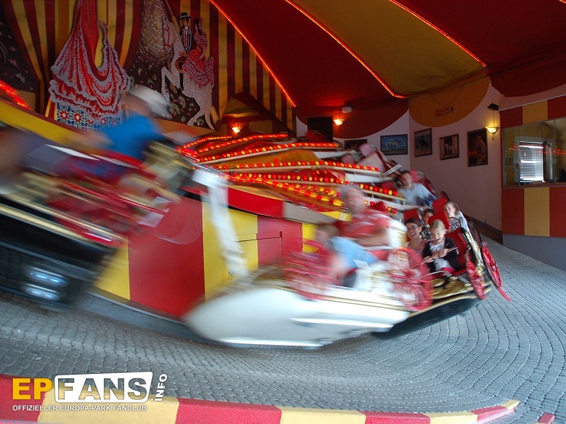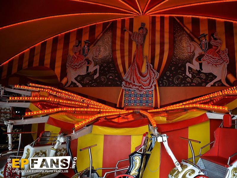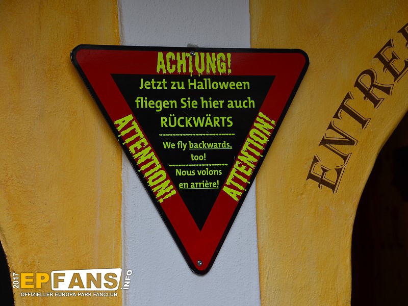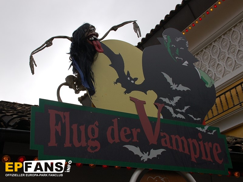 Zur Halloweenzeit wird aus "Feria Swing" - "Flug der Vampire". Zu dieser Zeit fährt die Attraktion teilweise rückwärts.