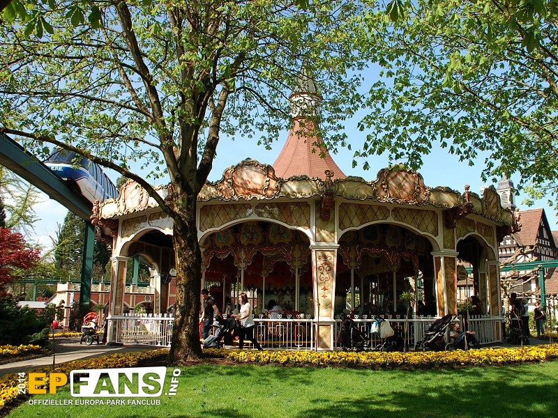 The British CarouselEngland - Das 100 Jahre alte Karussell mit seinen handgeschnitzten Pferden steht mitten im englischen Themenbereich.