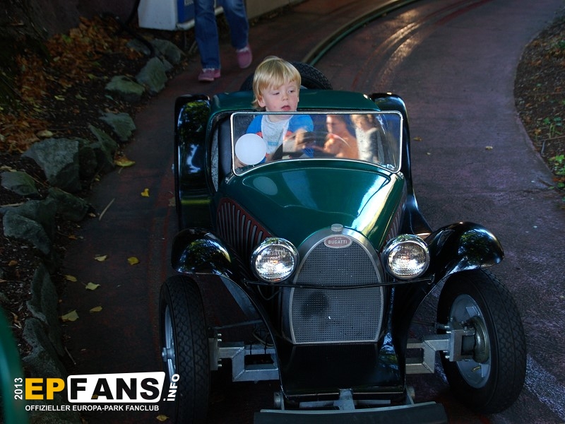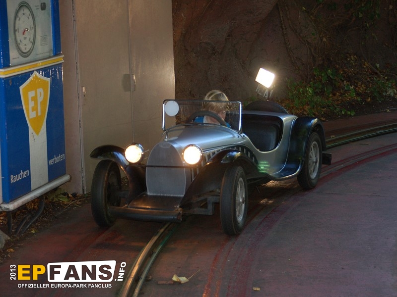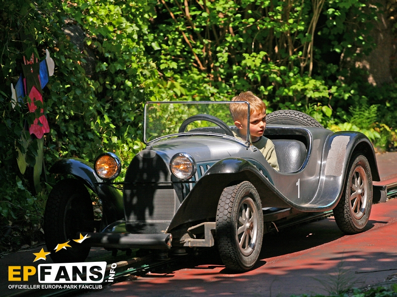 | Eröffnet | 1987 | Kapazität | 290 Personen/h | | Fahrzeit | ca. 1:30 min | | Anzahl der Autos | 6 | | Personen pro Auto | 2 | Maximalgröße | 1,35 m | Hersteller | Mack Rides |