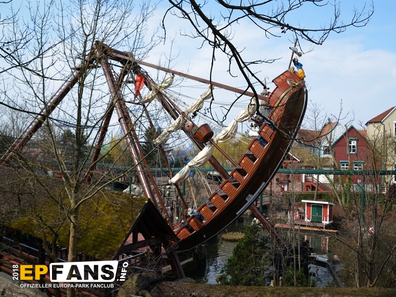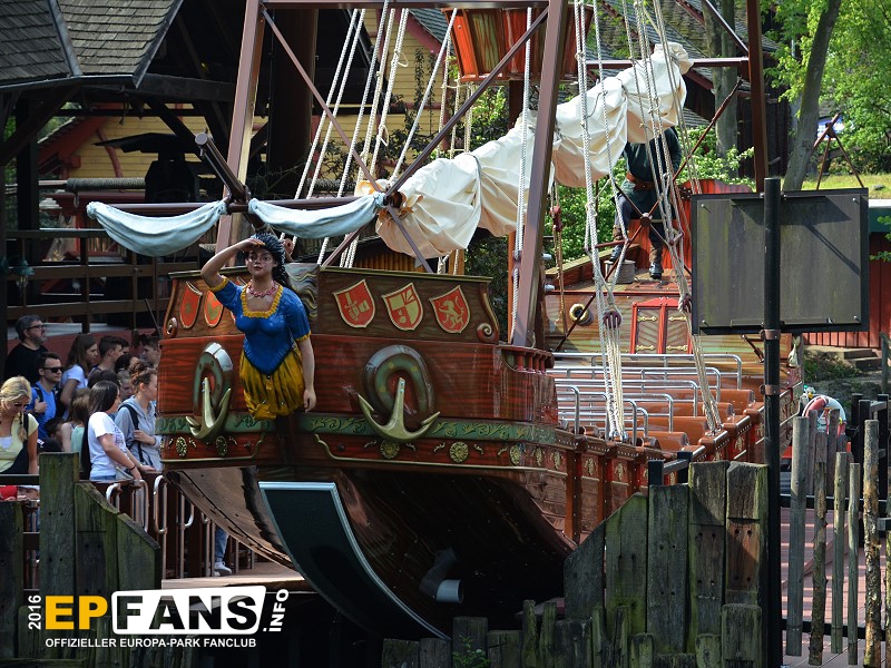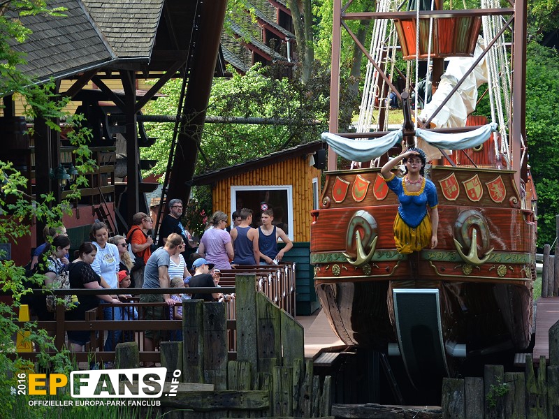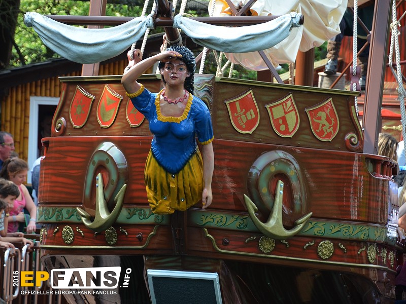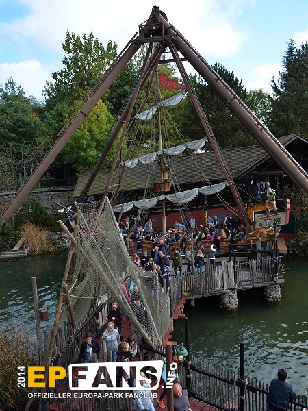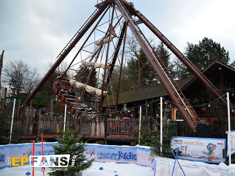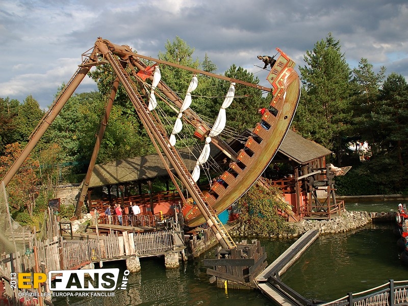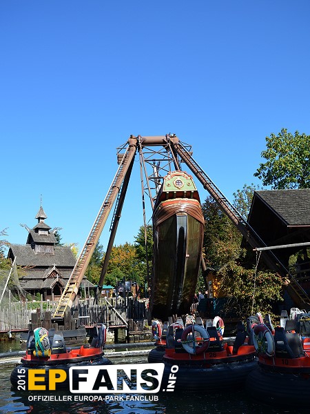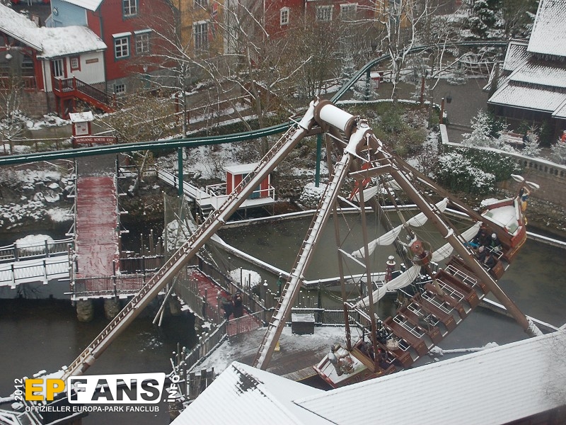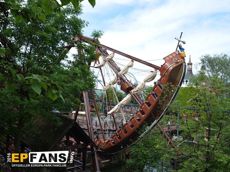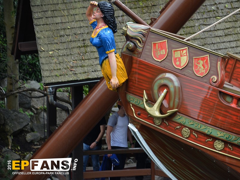 VindjammerSkandinavien - Schon die Wikinger wussten, wie gefährlich eine Überfahrt sein kann. Dazu muss nur das Wetter nicht mitspielen und schon schaukelt sich das Schiff auf den Wellen in die Höhe. Doch im Europa-Park wünschen wir Ihnen kein schlechtes Wetter - hier genügt es auf einer der Bänke der Schiffschaukel Platz zu nehmen. Das Boot wird durch einen Reifen auf der Unterseite angetrieben und wieder gebremst. Dabei wechselt er ständig die Drehrichtung um das Boot mit Schwung zu versorgen. Vor allem die äußeren Bänke sind sehr begehrt, weil hier der höchste Ausschlag des Schiffs auftritt und somit auch am meisten Magenkribbeln verursacht.