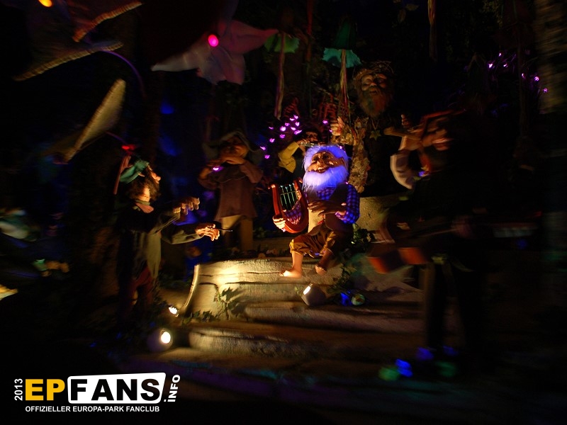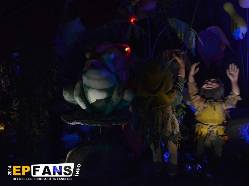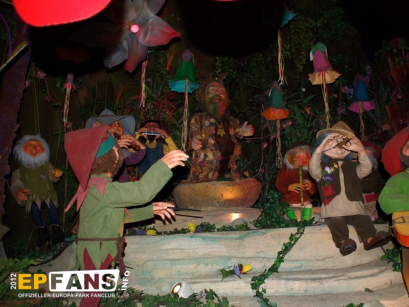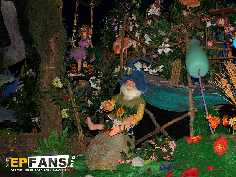 In schön gestalteten Booten beginnt die Fahrt durch einen Wasserkanal vorbei an einer Vielzahl von Bäumen, Sträuchern und einem Blumenmeer. Und immer wieder hört man auf der romantischen Reise das süße Lachen der kleinen Wichtel, die sich im Dickicht versteckt halten. Den Abschluss der wunderschönen Reise bildet die Fahrt durch den Elfenpalast, in dem die kleinen Elfen, Zwerge und Wichtel tanzen, singen und spielen und es macht riesigen Spaß, den kleinen Gesellen in ihrem Reich zuzusehen und zu hören. Und schnell entscheidet sich man für eine zweite Fahrt in das Reich der Elfen.