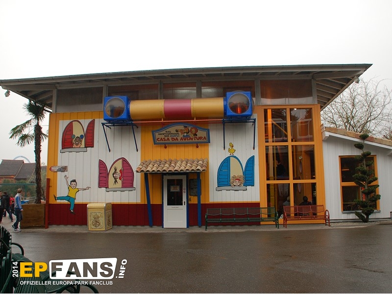 |  |  |  | Casa da Aventura - Das Haus der QuipsePortugal - Mitte Mai 2000 eröffnete in "Spanien" das Labyrinth der 100 populärsten Europäer. Schon 2003 wurde das Gebäude zu einem Kinderabenteuerhaus umfunktioniert und erhielt den Namen "Casa da Aventura". Das neue Äußere passte thematisch viel besser zum spanischen Themenbereich. 2005 wurde es dann Portugal zugeordnet. Die Spielwelt, welche abends extra für Hotelgäste länger geöffnet bleibt, stammt von der österreichischen Firma HPS - Play Company gebaut.Das Konzept des früheren "Labyrinth der 100 Europäer" stammte von Künstler Tomi Ungerer. Das dreistöckige Labyrinth führte die Besucher an Bilder der populärsten Europäer sowie an verformten Spiegeln vorbei. Die hundert Auserwählten wurden von der Zeitschrift "Bunte" erkoren. Im Casa de Aventura toben sich die Kids auf drei Etagen mit Röhrenrutschen, Rampen und unzähligen herunterfallenden Bällen aus. Zum Saisonstart 2014 wurde das Haus leicht umgebaut und bietet nun auch einen Aufenthaltsbereich für die Eltern. Weiterhin wurde der Name angepasst und heißt seit 2014 "Casa da Aventura - Das Haus der Quipse"