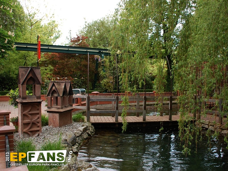 Wasserweg / Magische Eiswelt Schwanensee / Bloody Mary`s MansionEngland - Die wechselhaft klimatischen Verhältnisse von England kann man auf dem Wasserweg nachvollziehen. Starte einen Rundgang über die verwinkelte Holzbrücke, ohne dabei nass zu werden. Die versteckten Wasserfontänen sind für so manche Überraschung gut.Ab Oktober, wenn es im Park heißt "This is Halloween", verwandelte sich der Wasserweg bis zur Saison 2015 zur Spinneninsel. 2016 kam mit "Jack" etwas Neues in der Halloween Zeit. Der Europa-Park umschrieb es wie folgt: "Treffen Sie düstere Gestalten des verrufenen Londoner Stadtteils `Whitechapel`". Bis 14 Uhr konnte man Jack ohne Live Erschrecker erkunden. Auch 2017 und 2018 gab es wieder "Jack" in der Halloweenzeit. Diesmal musste man jedoch bis 11:00 Uhr durch diesen Weg laufen, wenn man ihn sich ohne die düsteren Gestalten anschauen wollte. Von 11:00 bis 18:00 Uhr waren Gestalten dort unterwegs. Ab 2019 hieß die Halloween Attraktion mit Live-Akteuren "Bloody Mary`s Mansion". Der Besuch wurde erst ab 12 Jahren empfohlen und Kinder durften nur iun Begleitung eines Erwachsenen das Horror-Haus betreten. Die Attraktion war von 11 Uhr bis Parkschluss geöffnet. 2020 gab es diese Halloween-Attraktion nicht. Seit der Wintersaison 2014/2015 verwandelt sich der Weg im Winter in die Magische Eiswelt "Schwanensee".