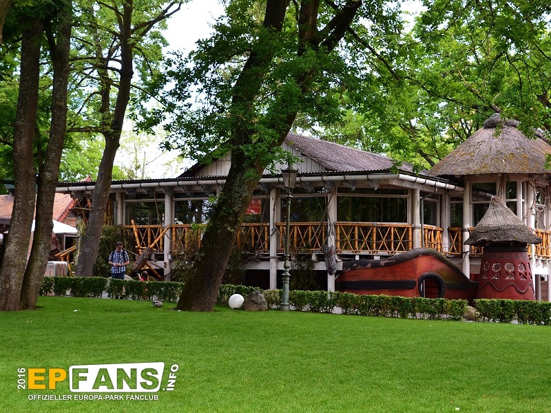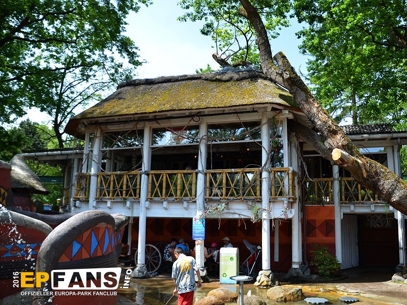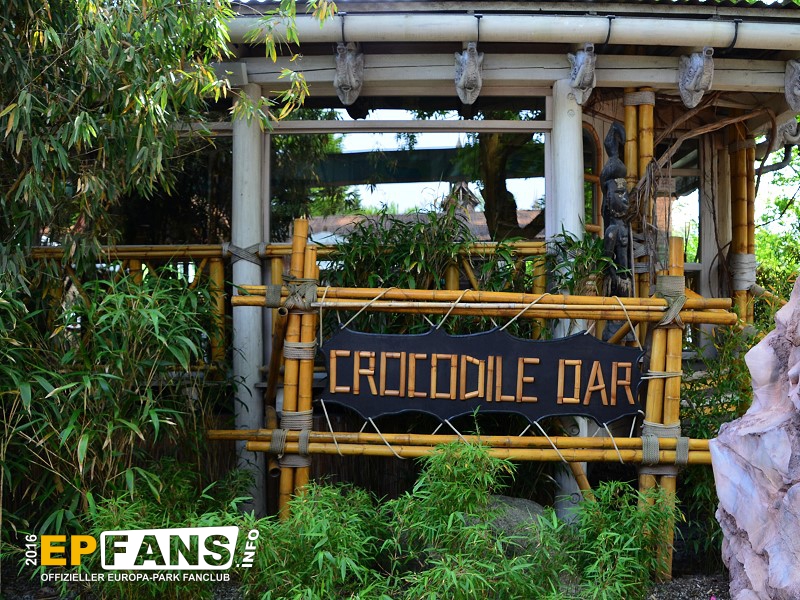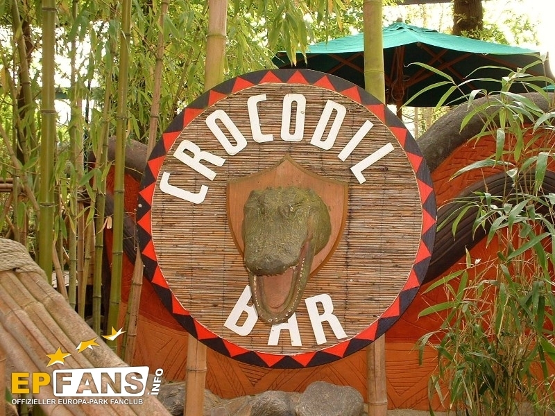 Crocodile BarAbenteuerland - Erfrischende Drinks, leckere Sorten Obstsalat oder erfrischende Quarkspeisen - dies alles findest du in der Crocodile Bar, die sich im Colonial House befindet. Verweile zu heißen Dschungelrhythmen und genieße den tollen Ausblick auf den großen See und das Abenteuerland.