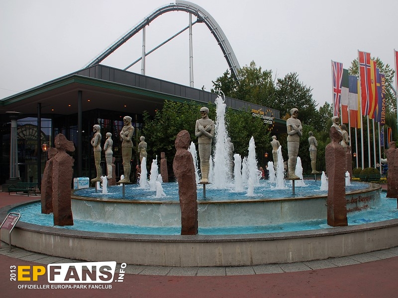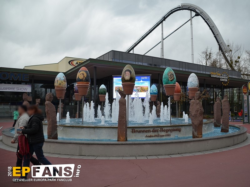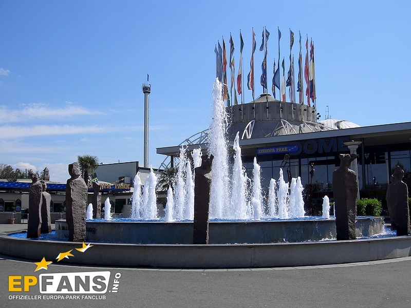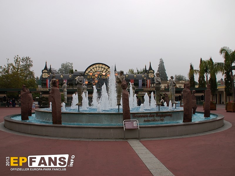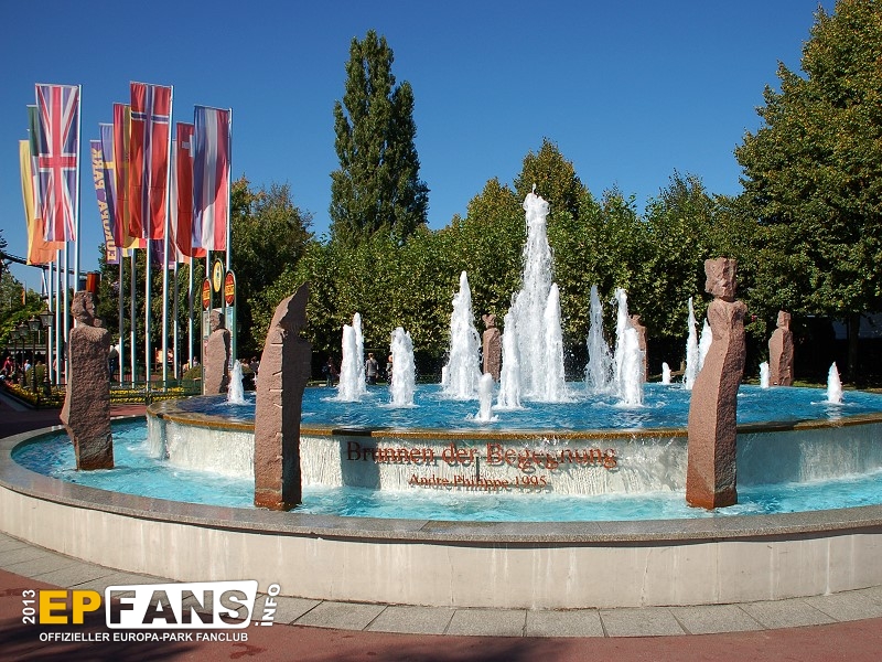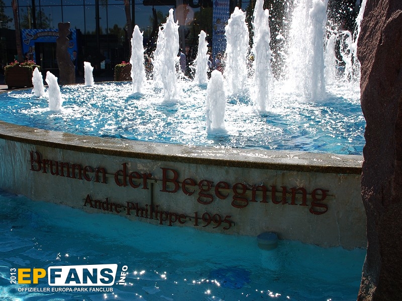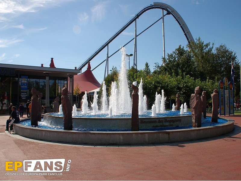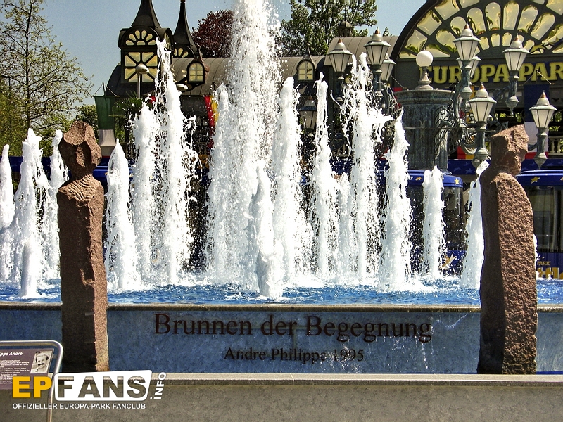 Deutschland - Direkt am Haupteingang steht der im Jahre 1995 von Philippe André geschaffene Brunnen der Begegnung und empfängt den Parkbesucher mit seinen weithin sichtbaren Fontänen und Skulpturen.
