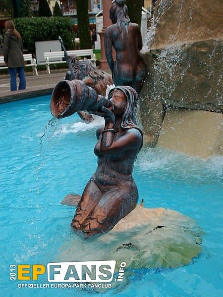 Europa-BrunnenDeutschland - Verlässt man die Deutsche Allee, sieht man direkt vor sich den Europa-Brunnen. Der mit vielen Bronzestatuen und Wappen geschmückte Brunnen lässt sofort den europäischen Gedanken des Parks erkennen. In den Bodenplatten sind Bronzesterne eingelassen, welche die Entfernungen zu verschiedenen europäischen Hauptstädten darstellen. Besonders in den Sommermonaten ist der Europa-Brunnen mit seinen Wasserspielen ein Ort, an dem man gern verweilt.