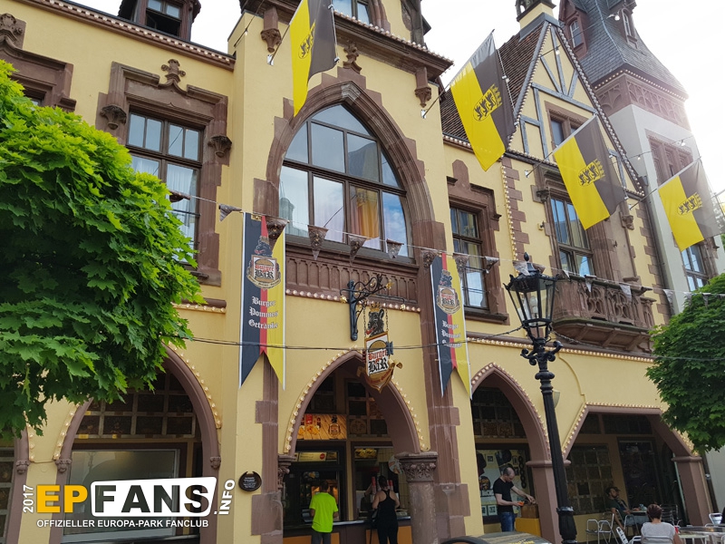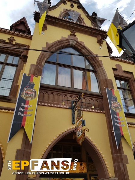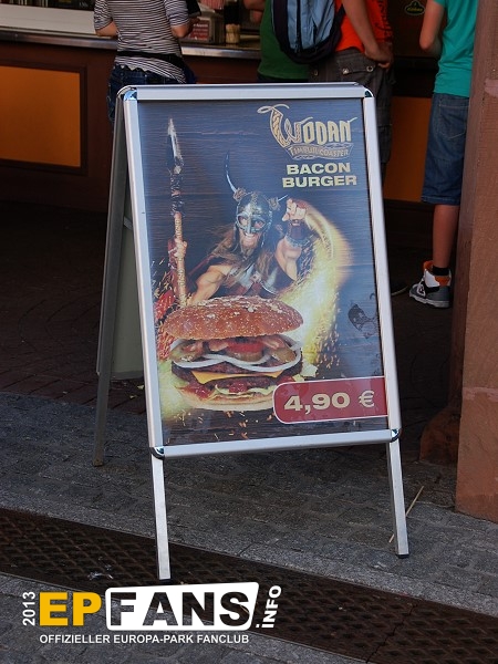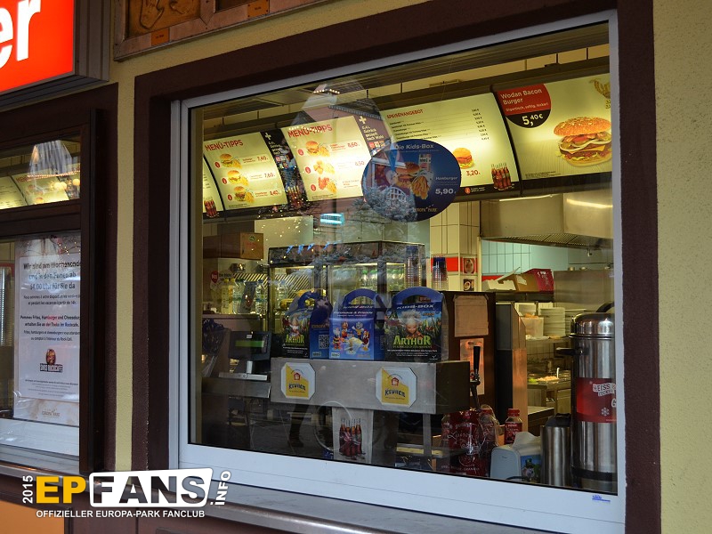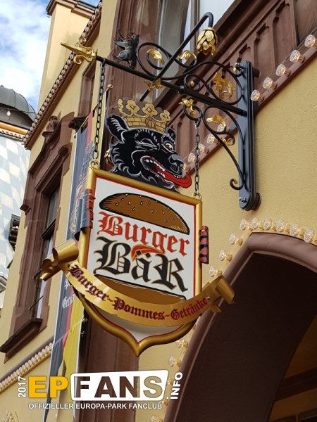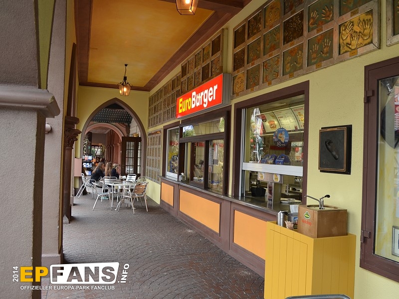 |  |  | Burger BärDeutschland - Direkt neben dem SWR3 Rock Café befindet sich der Burger Bär; eine der ersten Anlaufstellen in Sachen Hunger stillen beim Betreten des Europa-Parks. Während man aus dem Sortiment wie Burger, Pommes Frites oder Chicken Nuggets wählen kann, bietet sich dabei die Gelegenheit, an der Außenfassade unzählige in Tafeln eingelassene Handabdrücke großer Prominenter aus dem Musik- und Showgeschäft zu studieren.
