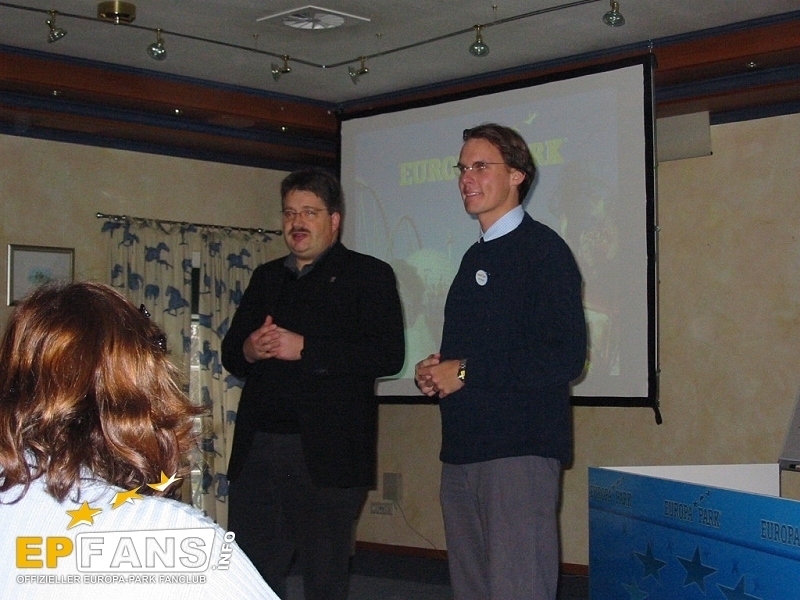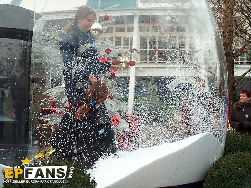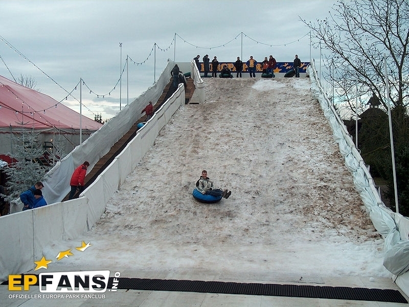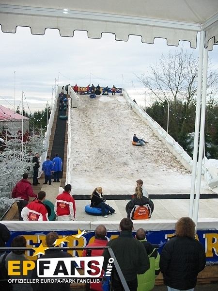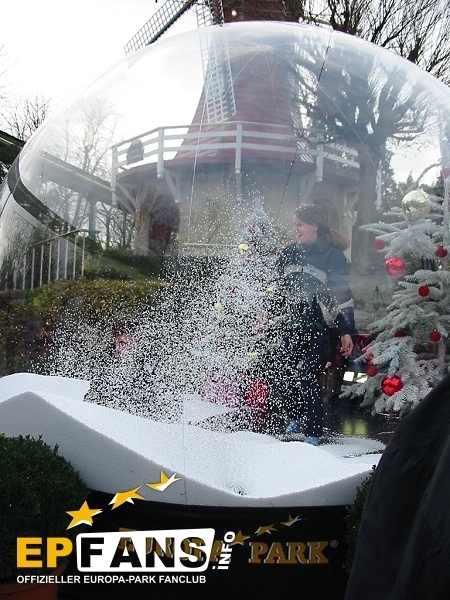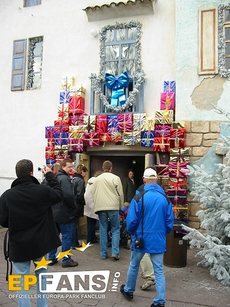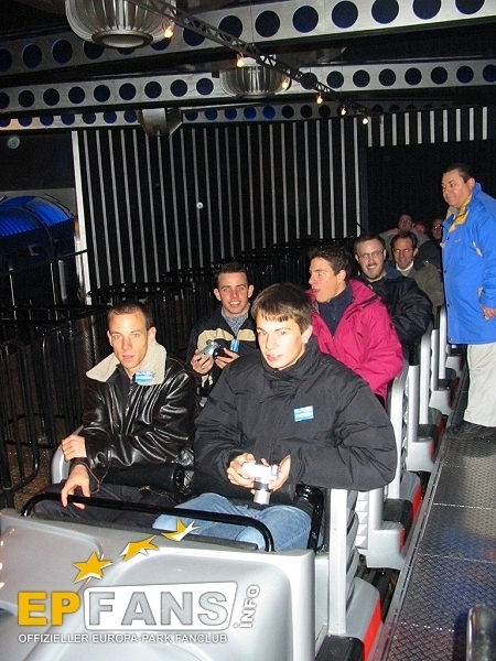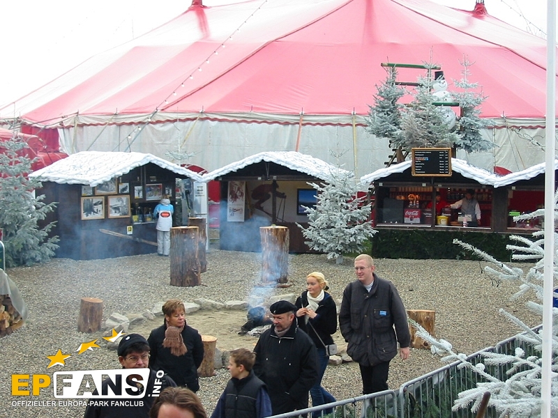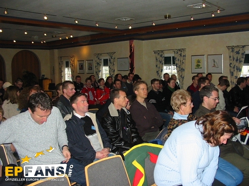 Erstes internationales Europa-Park WinterfantreffenGanz überraschend wurde innerhalb kürzester Zeit das erste internationale Europa-Park Winterfantreffen auf die Beine gestellt. Mitte Oktober landete bei uns die Anfrage, ob Interesse an einem Wintertreffen bestünde. Als Terminvorschlag wurde uns der 30. November 2003 genannt. Zusätzlich zum Wintertreffen bat man uns eine vergünstigte Übernachtung mit Frühstück für die Nacht vom 30. November 2003 auf den 01. Dezember 2003 in einem der beiden EP-Hotels("El Andaluz" oder "Castillo Alcazar") an. Bei diesem Angebot haben wir nicht lange gezögert und zugesagt. Für uns hieß dies allerdings innerhalb kürzester Zeit alles Notwendige zu organisieren, wie z.B. die Anmeldung , die Fertigung der Namensschilder, Sammlung der Gedanken zu möglichen Programmpunkten etc. .So sah das vergünstigte Übernachtungsangebot in Zahlen aus: 4-Bett: 27,00 € (statt 49,50 €) pro Person 3-Bett: 29,50 € (statt 55,00 €) pro Person 2-Bett: 36,00 € (statt 68,00 €) pro Person 1-Bett: 56,50 € (statt 106,00 €) pro Person Ab 9:15 Uhr begann der Check-In für die Fans diesmal in der Lobby vom Hotel "El Andaluz". Dort erhielt jeder der Teilnehmer, wie gewohnt, sein persönliches Namensschild. Während die Schilder ausgeteilt wurden, trafen auch Herr Kreft von Byern und Miro Gronau ein. Herr Kreft von Byern nahm alle Teilnehmer, die bereits in Besitz ihres Tickets und ihres Namensschildes waren mit in den spanischen Themenbereich. Wir folgten mit den restlichen Teilnehmern und Miro kurz darauf. Früher als geplant (9:45 Uhr anstatt 10 Uhr), standen die 62 Teilnehmer (40 aus Deutschland, 12 aus Frankreich, 7 aus der Schweiz und 3 aus der Niederlande) im Park und freuten sich auf das Programm des Tages. Nach einer kurzen Begrüßung begann unser Rundgang. Vorbei am Casa de Aventuras führte unser Weg zunächst in das Zirkuszelt. Darin wurden alle Vorbereitungen für den zweiten Wintersaisontag getroffen. Es wurde noch fleißig geputzt. Das Zelt stammte vom deutschen Zirkus Barum, wie wir dort erfuhren. In der Zirkus-Show waren auch einige Darbietungen vom Zirkus Barum zu sehen. Sie ergänzten die Auftritte der Parkeigenen Künstler. Wir setzten unseren Rundgang fort und landeten bereits nach wenigen Schritten mitten auf der "Schneezauberfläche". Im Sommer wurde auf dieser Fläche noch die Greifvogelpräsentation gezeigt. Jetzt befand sich hier die Schneerampe, wo Groß und Klein auf Reifen hinabrutschen konnten. Miro Gronau lud alle Fans dazu ein einmal herunter zu rodeln. Neben der Schneerampe gab es noch eine Kinderskischule, einige Buden, eine der zahlreichen Feuerstellen und eine Sesselliftgondel. Nach dem Rutschspaß erzählte Miro Gronau, dass die Grundschneedecke für die Rampe aus Hamburg stammt. Dort befindet sich ein Unternehmen, dass eigentlich aus Scherbeneis Schnee für die Kühlung von Meeresfischen auf Fischkuttern produziert. Es war für den Park tatsächlich günstiger den Schnee dort zu besorgen, als ihn aus den Alpen zu holen, wo noch nicht so viel Schnee vorhanden war. Am Feldberg im Schwarzwald gab es überhaupt keinen Schnee, den man hätte nutzen können und die Schneemaschinen hätten bei den für Wintertage recht hohen Temperaturen nicht genug Schnee produziert. Die nächste Station unseres Rundgangs war in der Nähe der Windmühle im holländischen Themenbereich. Am Fuße der Mühle stand eine Schneekugel. 2 Teilnehmerinnen hatten das Vergnügen sich dort hinein zustellen. Direkt vor dem Drehtheater waren die Kinder Skibobs. Hier wurde die Fläche von einigen Parkmitarbeitern gerade für den neuen Tag hergerichtet. Es wurde etwas Schneenachschub heran gefahren und verteilt. Auch hier waren die hohen Temperaturen ein Problem. Der Schnee schmolz fleißig vor sich hin. Dazu kam noch das Umwälzen des Schnees durch die Skibobs, weshalb diese Attraktion bereits am Vortag immer wieder geschlossen werden musste, um die Piste wieder befahrbar zu machen. Als Ersatz öffnete der Park im Laufe des Tages die Silverstone-Piste. Wir gingen ein paar Schritte weiter und landeten am Preview-Zelt vom Hotel Colosseo. Allzu viel erzählte Miro Gronau hier nicht, da noch eine Führung durch die Baustelle gegen 14 Uhr folgte. Der weitere Weg verlief durch den russischen Themenbereich zum Weg zwischen Russland und der Schweiz. Hier befand sich eine von zwei Attraktionen aus der Halloween-Zeit, die zur Winteröffnung umgestaltet und wieder geöffnet wurde. Es handelte sich dabei um das Grusellabyrinth, das nun ein Winterlabyrinthwar. Die zweite umgestaltete Attraktion besuchten wir direkt im Anschluss. Die Gruselkatabomben in Griechenland waren nun eine Weihnachtsgrotte. Nach dem durchlaufen dieser beiden Attraktionen konnten die Teilnehmer einmal in den Euro-Tower und dann kurz vor Parköffnung um 11 Uhr folgte eine Fahrt in Eurosat mit Beleuchtung. Anschließend trafen wir uns zur obligaten Gesprächsrunde im Konferenzraum "Petit Paris". Miro Gronau zeigte uns zuerst die offizielle Parkpräsentation, danach präsentierte Herr Kreft von Byern einen EP Image-Film und zum Schluss wurden Fragen der Teilnehmer von beiden beantwortet. Welches der neue Themenbereich 2005 wird, wurde uns natürlich nicht verraten. Über die nächste Saison erfuhren wir aber kleine News. So sollten in der spanischen Arena Gladiatorenkämpfe zu sehen sein. Allgemein wollte man alle Shows irgendwie mit dem Thema "Italien" in Verbindung zu bringen. In Sachen Attraktionen sollte es höchstens da und dort zu Änderungen an der Dekoration kommen. Einzig bei Poseidon sollte an der Bahn gearbeitet werden. Es war geplant eine Schiene beim First Drop zu wechseln, welche bis dato Schläge an die Fahrgäste verteilte. Herr Kreft von Byern erzählte auch, dass sowohl die Familie Mack als auch er und Miro Gronau fleißige Leser der Foren aus Deutschland und Frankreich seien. Dabei saßen sie schon so manches Mal davor und klopften sich auf die Schenkel. Als Gesprächsrunde gab Herr Kr