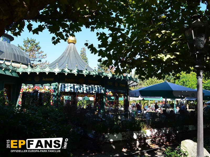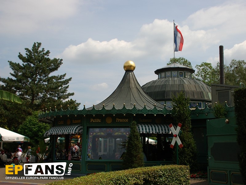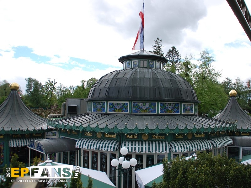 Restaurant Petite FranceFrankreich - Das Petite France ist eines der ältesten Restaurants im Europa-Park. Schon von weitem ist es durch sein großes Kuppeldach erkennbar. Das Innere wird bestimmt durch traumhafte Glasmalereien und die riesigen Tiffany-Lampen. Des Weiteren ist das Petite France die richtige Anlaufstelle, um gemeinsam einen Kindergeburtstag zu feiern. In einem besonderen Bereich wird dort auf Bestellung eine Geburtstagstorte serviert und Künstler des Europa-Parks bereiten den Kleinsten unvergessliche Stunden.