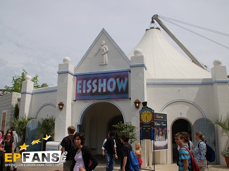 Griechenland - Das riesige Zelt im griechischen Themenbereich ist das Eisstadion des Europa-Park. Dort werden hochkarätige Shows auf schnellen Kufen aufgeführt. Von 2002 bis 2006 war der Vize-Weltmeister Norbert Schramm für die Shows im Sommer und Winter verantwortlich. 2007 wurde die Show erstmalig von Francis Demarteau in Szene gesetzt. Er ist fünffacher belgischer Meister und erfolgreicher Teilnehmer an internationalen Eiskunstlauf-Meisterschaften sowie langjähriger Choreograph bei "Holiday on Ice". Seit der Saison 2010 liegt die Leitung der Eisshow bei Ian Jenkins und Sandra Escoda.