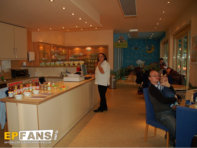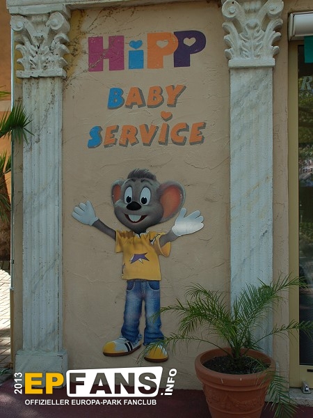 HIPP-Baby-ServiceIm Themenbereich Italien befand sich direkt unter Volo Da Vinci von der Sommersaison 2003 bis zur Wintersaison 2018/2019 der HIPP-Baby-Service. Dieser war eine Ruheinsel für Familien mit ganz jungen Gästen.Im Eingangsbereich gab es zwei große und gut ausgestattete Wickelräume. An gut besuchten Tagen hieß es hier Schlange stehen. Im Hauptraum standen Tische und Hochstühle. Im hinteren Bereich war eine Spielecke eingerichtet und ebenso eine abgegrenzte Stillecke mit Clubsesseln. Im ganzen Raum war es angenehm warm. Bei den freundlichen, netten und hilfsbereiten Mitarbeitern von HIPP waren Babynahrung, Getränke, Flaschennahrung in Portionsbeuteln (keine Großpackungen), Knabbereien für Babys und Kleinkinder, Notfallwindeln und Notfallfläschchen erhältlich. Den Stilltee gab es kostenlos. Die Mitarbeiterinen gaben Tipps und Ratschläge. Des Weiteren lagen zahlreiche Informationsbroschüren zum Mitnehmen aus. Für die Zubereitung von Fläschchen wurde heißes, abgekochtes Wasser zur Verfügung gestellt. In der Mikrowelle konnte Gläschennahrung erwärmt werden. Es war ein Service für Eltern und Kinder, aber keine Kinderbetreuung. Vor dem HIPP-Babyservice war in diesen Räumlichkeiten das Kindertheater.