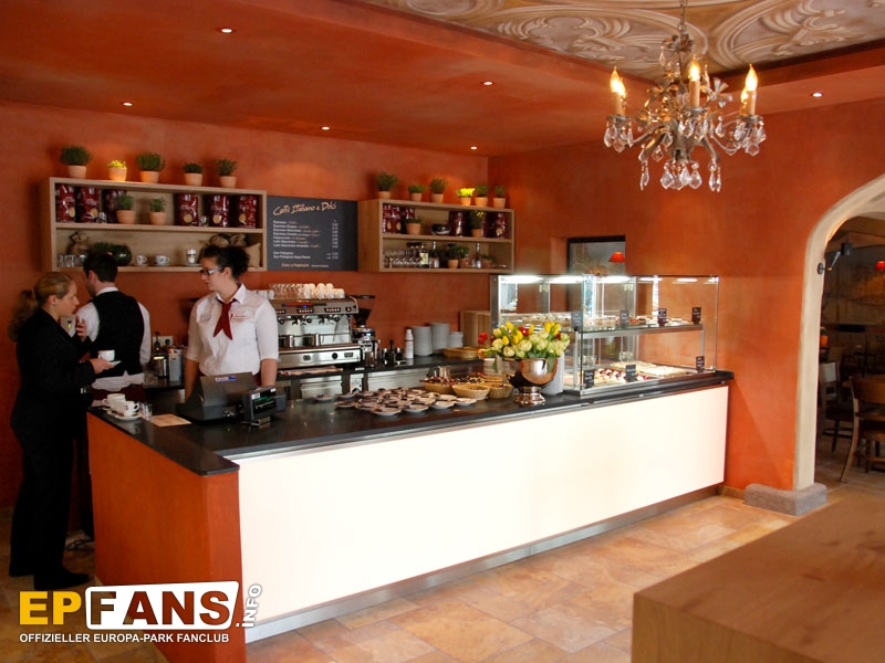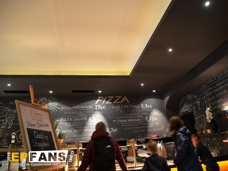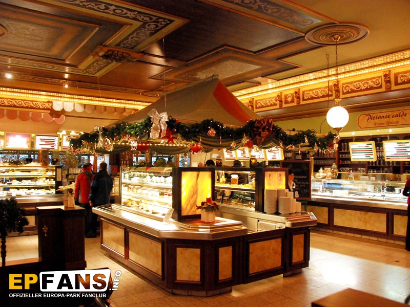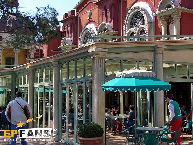 |  |  |  | Pizzeria VeneziaItalien - Genieße eine schmackhafte Pizza oder Pasta nach original italienischen Rezepten im Restaurant, oder einen kühlen Drink auf der Piazza.Um der steigenden Nachfrage der Gäste nach italienischer Küche gerecht zu werden, wurde das beliebte italienische "Ristorante Venezia" 2006 um 120 Sitzplätze erweitert. Neu hinzugekommen ist auch ein großräumiger, von Kunstmalern gestalteter, Wintergarten in italienischem Flair. Die Besucher können nun bei einem köstlichen Glas Frascati einen Blick durch die großen Glasfronten auf die belebte Piazza des 1982 eröffneten Italienischen Themenbereichs werfen. Zur Saison 2010 wurde der italienische Teil des Restaurants komplett neu aufgebaut und umgestaltet. Im Zuge des Komplett-Umbaus erfuhr der Theken- und Verkaufsbereich ein frisches Design sowie die Sitzgelegenheiten im Bereich Italien eine liebevolle Ausarbeitung nach detailgetreuem Vorbild verschiedener italienischer Regionen. Weiterhin gibt es nun einen direkten Durchgang zum französischen Bistro La Cigale. Zu den Bauarbeiten 2010 siehe auch unseren News-Artikel vom 26.02.2010: epfans.info - Exclusiv vor Ort 3/3 Die Bilder 1 und 2 zeigen den ursprünglichen Eingangsbereich bis 2006. Bild 3 den 2006 angebauten Wintergarten, die Bilder 4 bis 9 den Innenbereich bis zur Wintersaison 2009/2010. Die Bilder ab Nr. 10 entstanden zu Saisonbeginn 2010.