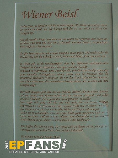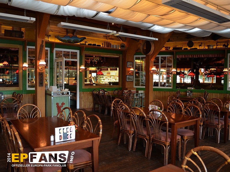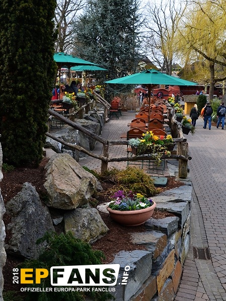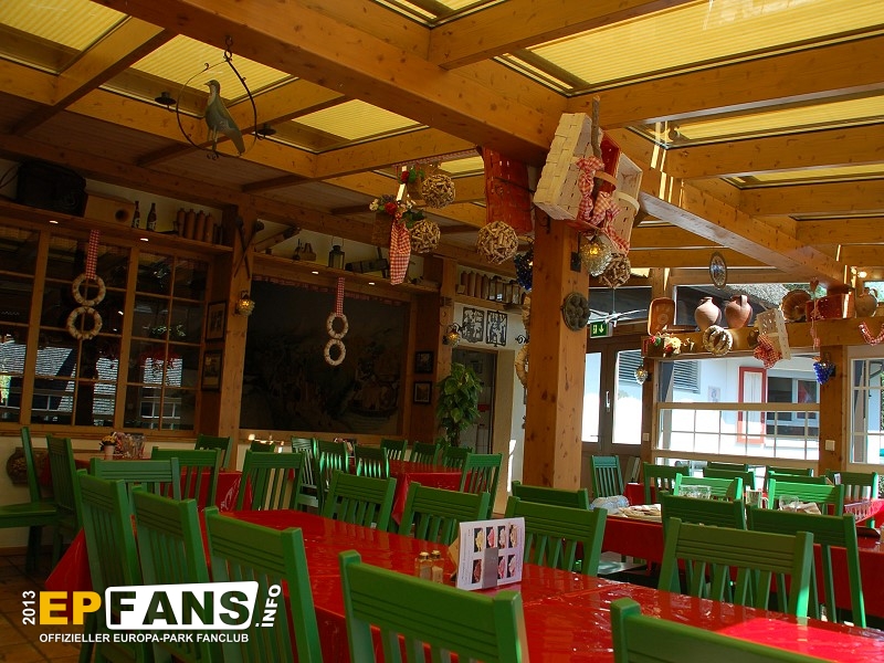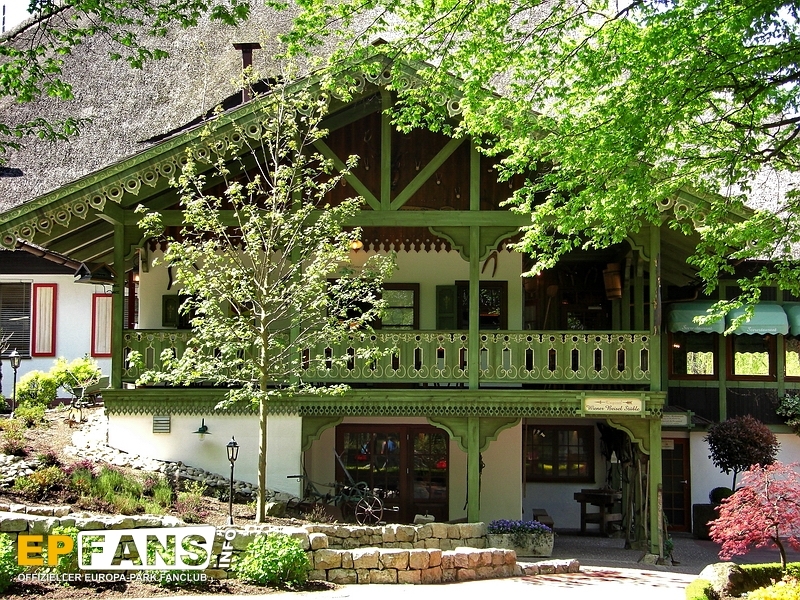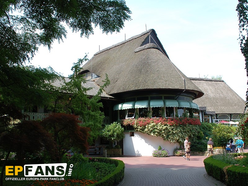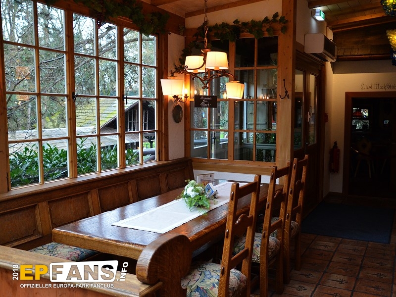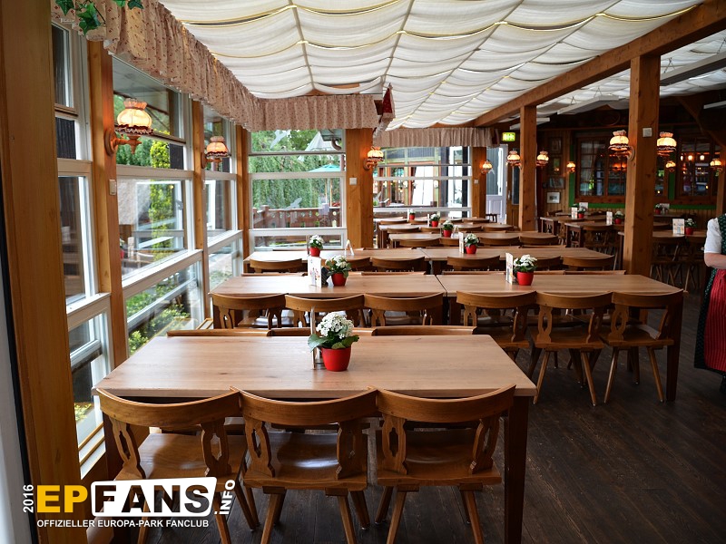 Das urgemütliche "Wiener Beisl" im Seehaus Restaurant wurde um den lauschigen Weingarten "Zum Heurigen" ergänzt und bietet sowohl einen wunderschönen Blick auf den Europa-Park See als auch auf die Familienattraktion Wiener Wellenflieger in Gestalt eines Steinpilzes.