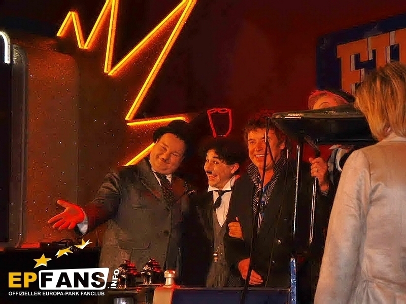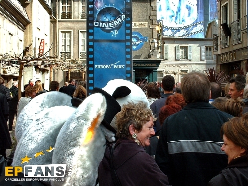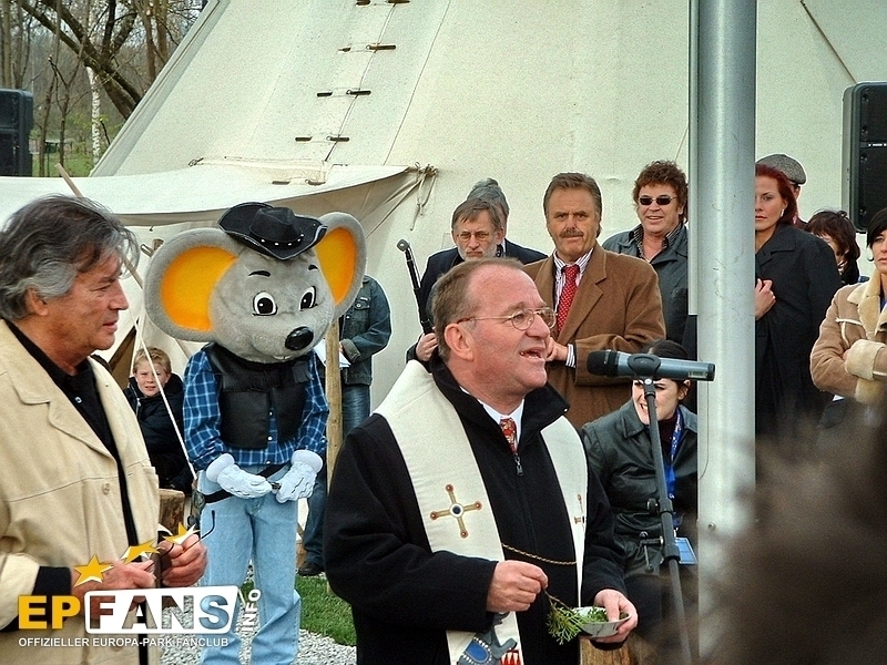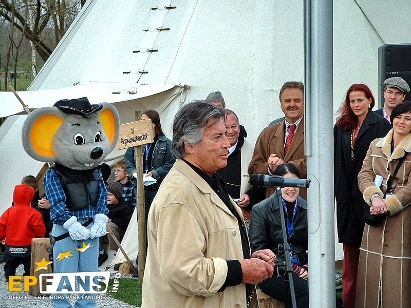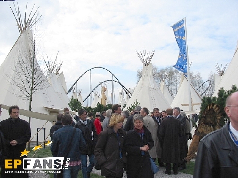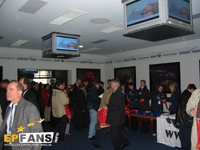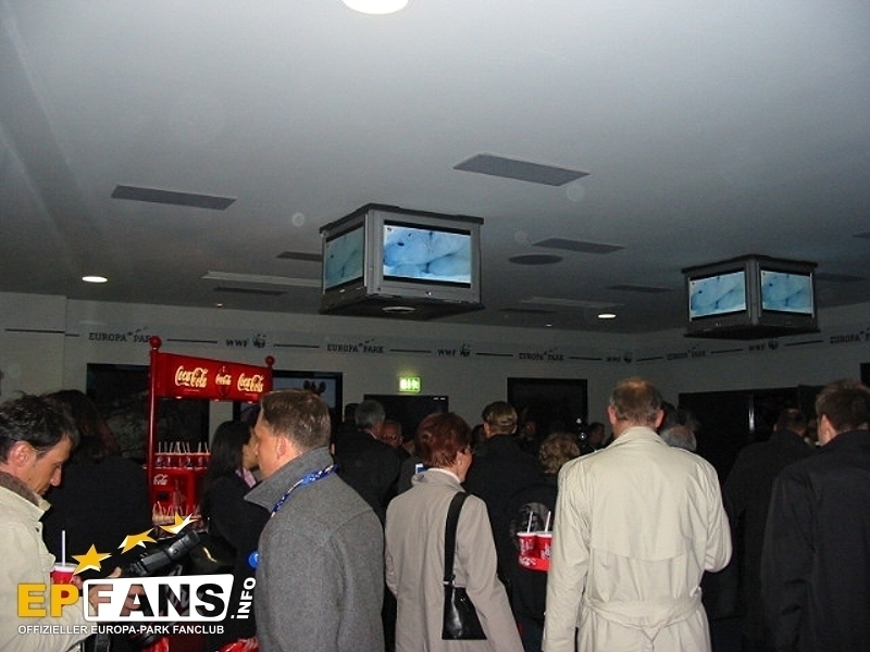 Pressekonferenz 2003Im 448 Sitzplätze umfassenden Magic Cinema 4D wird während den Parköffnungszeiten der 4D-Film "Panda Vision" gezeigt. Nach Parkschluss dient das Kino für normale Filmvorführungen. Die Filme sollen im Zwei-Wochen-Takt jeweils ausgewechselt werden. Der knapp 15-minütige 4D-Film "Panda Vision" führt die Zuschauer 2 mal pro Stunde in drei total verschiedene Naturlandschaften: Die Arktis, der Ozean und der Regenwald. Am Schluss jeder Szene wird dem Zuschauer bewusst gemacht, welche zerstörende Folge das menschliche Handeln für die jeweilige Naturlandschaft hat.Der Film ist phantastisch. Die dreidimensionalen Effekte, welche nach der altbekannten Polarisationsmethode erreicht werden, kommen sehr gut zum Tragen. ?ber die vierte Dimension wollen wir, den Nichtkenner zuliebe, nicht viel verraten. Eines kann aber geschrieben werden. Es werden alle 5 Sinne gereizt, wobei dem Geschmackssinn mit Popcorn oder einem Eis nachgeholfen werden muss :-). Die Technik in diesem modern gestalteten Kino ist sicherlich auf dem neusten Stand. Neben dem High-Tech Raumklangsystem Dolby Digital 6.1 bietet das "Magic Cinema 4D" auch sogenannte Bodyshakers. Dies ist eine Art Bass-Lautsprecher, welcher unter den Sitzen platziert ist, und diese so während dem Film zum Vibrieren bringt. Die Technikkosten von 1.4 Mio. ?? machten eine grossen Teil der Gesamtkosten von 2.2 Mio. ?? aus. Wie bereits erwähnt, werden im Kino nach Parkschluss "normale" Filme gezeigt. Normal steht deshalb in Anführungszeichen, weil auch für diese Filme die 4D-Effekte wie Wind, Regen, Geruch oder Vibration eingesetzt werden. Somit erlebt man im Europa-Park unvergleichliche Kinoerlebnisse. Zum Start werden die Filme "Dschungelbuch II" um 19.30 Uhr und "Daredevil" um 21.30 Uhr gezeigt. Der Eintritt kostet lediglich 5.-- ?? für Erwachsene und 3.50 ?? für Hotelgäste und Kinder. Die Hotelgäste werden jeweils mit der Panorama-Eisenbahn zum Kino gefahren. Bei kalten Temperaturen eröffneten Roland Mack, Jürgen Mack, Apachenhäuptling Winnetou alias Pierre Brice und Miss Germany Babett Konau die neuste Erweiterung des Europa-Park Camp-Resorts. 22 Tipis mit insgesamt 194 Betten, verteilt in Fünfer- und Zwölferzelte, bilden das neue Tipidorf. Jedes Zelt verfügt zusätzlich über eine Heizung und eine grosse Glühbirne an der Decke. Die Zelte stammen übrigens von der EXPO.02 in der Schweiz. Neben dem Tipidorf wurde eine "Scheune" mit Duschen für die Abenteurer gebaut. Ich hatte, fragt mich nicht wieso, einfach hingestellte Zelte erwartet, aber sie wurden in eine Umgebung integriert Zeltnamen, Feuerplatz und Totempfählen... echt schön! Mit 12.-- ?? pro Nacht bieten die Tipis eine kostengünstige Alternative zu den 4-Sterne-Hotels. Im Gebäude des Labyrinths der 100 Europäer entstand über die Winterpause die Casa de Aventuras. ?ber drei Stockwerke erstreckt sich das Kinderspielhaus der Firma HPS - Play Company. Leider dürfen nur Kinder bis 12 Jahren in den Röhrenrutschen herunterrutschen, in die Knuffsäcken hauen, Rampen hinaufklettern und die Sicht von den Aussichtspunkten aus geniessen. Resort-Hotelkids werden die Möglichkeit haben bis in die Abendstunden vom "Casa de Aventuras" zu profitieren. Farblich wurde das Gebäude an den Spanischen Themenbereich angepasst und fällt nicht mehr so krass aus dem Bild. Wie beim Casa de Aventuras hat der Europa-Park auch hier eine schlecht thematisierte Attraktion sehr gut verbessert. Der Taiga-Shuttle mit der Schlittenfahrt wird jetzt zum Kamtschatka Airline Klub. Das Gebäude auf alt getrimmt. Zusätzlich wurden Thematisierungselemente wie ein herunter-gekommenes Flugzeug und ein altes Fahrzeug hingestellt. Ein unorthodoxer "Check-In" und der "Flug" sorgen für ein weiteres Chaos. Der Flug sollte die Gäste eigentlich auf die russische Insel Kamtschatka bringen, doch die Mission steht unter keinem guten Stern... Die Elfenfahrt ist die dritte Attraktion, welche dieses Jahr ein neues Theming erhielt. Die Bauarbeiten waren heute noch nicht abgeschlossen und man konnte das Innern des neues Gebäudes nicht ansehen. Es wurden wiederum alle Shows neu inszeniert. Im Teatro dell`Arte wird die Variétéshow FUNtastico gezeigt, in der Spanischen Arena Der Kampf um das Zauberschwert, im Eispalast Surprise und im Globe Theater Hexen, Hasen und Hamlet. Wie letztes Jahr, konnten wir auch dieses Jahr die von Norbert Schramm inszenierte Eisrevue ansehen. Die Show mit sehr extravaganten Kostümen wird wahrscheinlich mehr als einmal den Eispalast zum Kochen bringen, denn die hei?en Rhythmen verleiten die Zuschauer sicher zum mitmachen. HIPP präsentiert im Italienischen Themenbereich eine Servicestation für die kleinsten Gäste und ihre Eltern, den HIPP Baby Service. Hier finden sie Versorgung und Verpflegung... eine Oase der Ruhe. "Di Roma" ist nur der Arbeitstitel der Riesenbaustelle. Der Park hat sich noch nicht für einen definitiven Namen entschieden können. News zum Hotel gab es keine. Es wurde eine 3D-Animation des Hotels gezeigt.