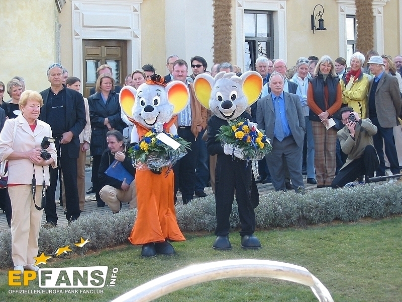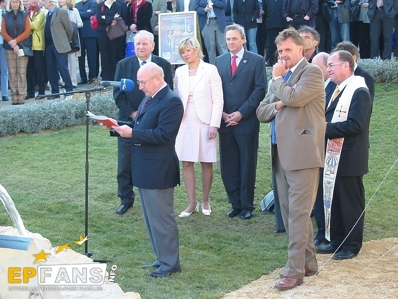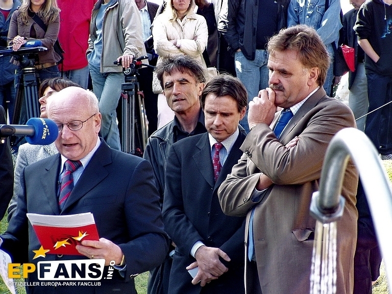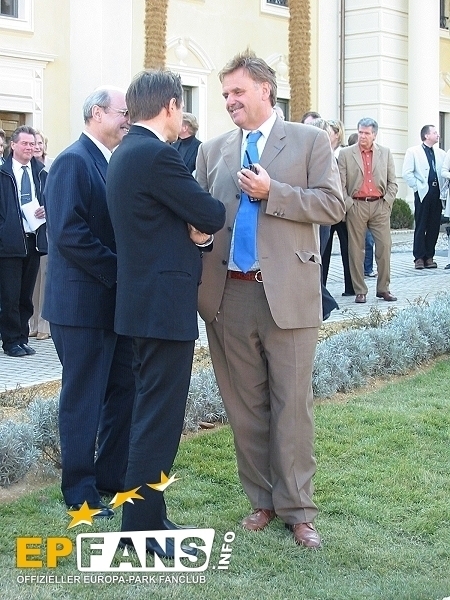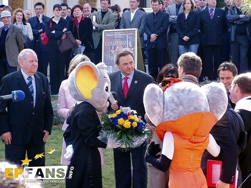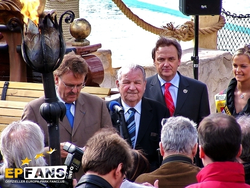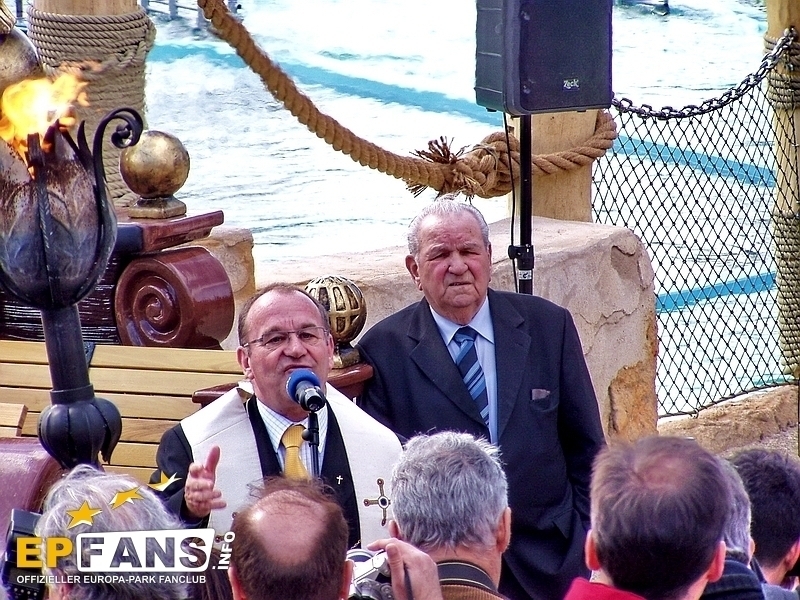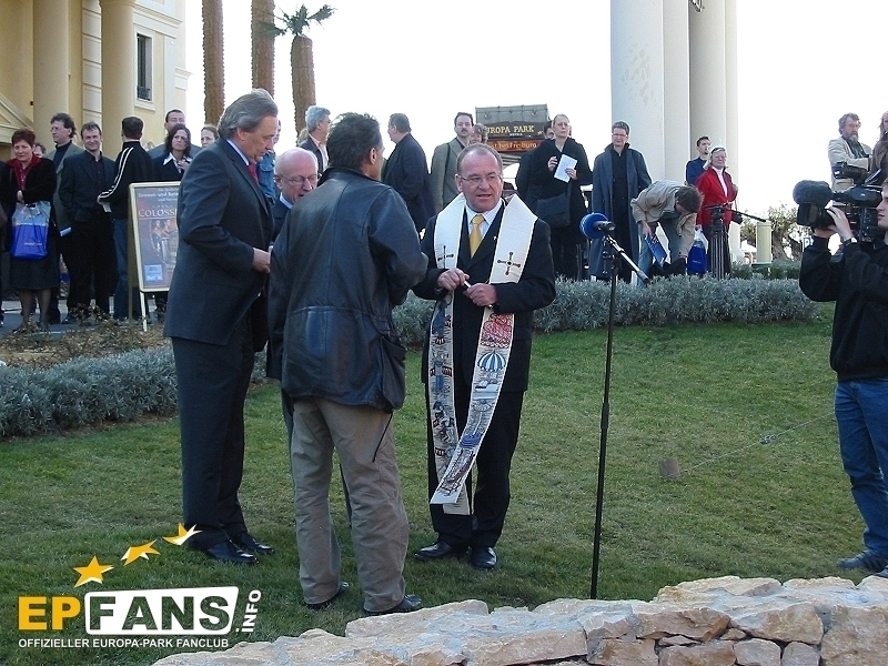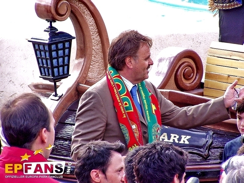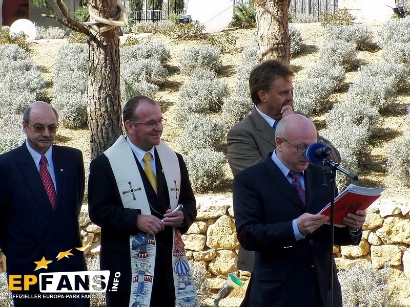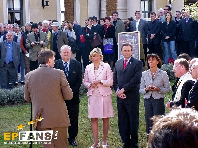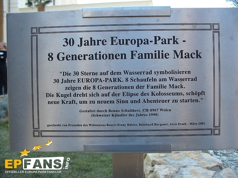 Pressekonferenz 2005Am 17. März fand im Europa-Park die alljährliche Eröffnungspressekonferenz statt. Um 10 Uhr versammelten sich Presse, Partner und Freunde der Familien Mack sowie einige Fans im Hotel Colosseo. Mit Kaffee, Sekt und Snacks wurden wir zum Konferenzsaal "La Scala" gelockt, wo dann auch gleich die diversen Vorträge der Geschäftsleitung des Parks stattfanden. Das Hauptthema war dabei das 30-jährige Jubiläum des Freizeitparks. Geschichten, Fakten und schliesslich ein Geburtstagsfilm erinnerten an die Anfängen im Jahr 1975. Die neue Attraktion "Atlantica" sowie Portugal wurden nur am Rande erwähnt, denn wir würden die Bahn ja bald live testen können. Zum Abschluss dieser Runde kam Roland Mack auf die politische Lage in Europa und Deutschland zu sprechen und verglich sie mit dem Europa-Park. Nachdem die Anwesenden alle nötigen sachlichen Informationen erhalten hatten, konnte zum praktischen Teil des Tages übergehen... der Eröffnung von Atlantica.Atlantica: Promi-Boot Von ausserhalb des Parks aus gesehen ist die neue Bahn wahrlich keine Schönheit. Da machte man sich schon etwas Sorgen, wie das denn von innen wirken wird. Doch die Sorgen waren nicht berechtigt. Vor allem die Bäume und Büsche im Hintergrund der Bahn verdecken die Sicht auf den Stützenwald über dem Hotelparkplatz. Die portugiesische Thematisierung ist wieder mal sehr gelungen. Trotz den ?hnlichkeiten mit Griechenland, kommt in Portugal eine andere Stimmung rüber. Wenn der Park mit dem Themenbereich dort weiterfährt, wo er nun begonnen hat, kann man sich durchaus auf die Erweiterung freuen. Nun noch ein paar Worte zur Bahn selber. Die beiden Drops (erst rückwärts, dann vorwärts) machen richtig Spass. Auch die Befürchtung, man werde nicht nass, hat sich nicht bewahrheitet. Wer nass werden will, sitzt hinten aussen. Trotz momentan voller Bremsleistung der Magnetbremsen wird man schon recht nass... im Sommer wird`s also dann so richtig lustig. Die Einfahrten auf die Drehplattformen sind sehr langsam und langweilig. Man wartet mit Sehnsucht dass es endlich losgeht. Ansonsten ist Atlantica für das was es ist, nämlich ein SuperSplash, sehr funny und bietet mit aussergewöhnlichen Fahrelementen Sensationen für die ganze Familie. Wir haben noch verschwiegen, dass wir nach den Vorträgen im Tagungsraum "La Scala" nicht direkt zu Atlantica gelaufen sind, sondern vor der "Via Rustica", der Unterführung vom Colosseo zum Park, einen Zwischenhalt vor einem wahrlich ungewöhnlichen Geburtstags-geschenk eingelegt haben. Der Schweizer Künstler Benno Schulthess hat den Familien Mack zum 30. Jubiläum des Europa-Parks den "Mack-Brunnen" geschenkt. Auf einer ovalen Schiene dreht eine riesige Chromstahlkugel im Vier-Minuten-Takt ihre Runden. Angetrieben wird die Kugel durch ein Wasserrad, welches ganz symbolisch mit 30 Sternen die 30 Jahre des Europa-Parks und mit acht Schaufeln die acht Mack-Generationen widerspiegelt. Nachts soll der Brunnen dann beleuchtet werden. Der Europa-Park hat letztes Jahr im Confertainment-Bereich ein zweistelliges Umsatzplus erreicht. Logische Konsequenz daraus ist es, die Möglichkeiten für Tagungen im Europa-Park zu erweitern. Beim Haupteingang, neben dem Europa-Park-Dome, wurde das historische Spiegelzelt "Traumpalast" aus dem Jahre 1920 des Zirkus Roncalli aufgebaut. Diese Erweiterung im Confertainment-Segment ist gleichzeitig auch ein Blick "back to the roots" auf die Firmengeschichte der Mack Rides GmbH. Schliesslich begann das Unternehmen mit dem Bau von Wagen für Schausteller und Zirkusleute. Das 23eckige Spiegelzelt hat einen Durchmesser von 16,3 Meter und bietet Platz für rund 200 Gäste. Der Zugang ist direkt von aussen oder aber durch das Foyer des EP-Domes. Natürlich haben sich im Park wieder zahlreiche weitere Kleinigkeiten geändert. So hat die Wildwasserbahn neue Boote erhalten. Sie haben mehr Wurzeln dran und sehen deshalb etwas wilder aus. Komplett erneuert wurde der Bodenbelag der Deutschen Allee. Auch dieses Jahr wurde an einigen Attraktionen renoviert und erweitert. Die Puppen der Old 99 Fahrt haben nämlich nun alle neue Kleidchen und auch in den Kamtschatka Airline Klub wurde weiter investiert. Diese Saison ist ein neuer Film zu sehen und in der Kabine wurden zusätzliche Effekte eingebaut. An vielen Ecken des Park sieht man frische Farbe wie beispielsweise im spanischen Themenbereich oder an der Schweizer Bobbahn.