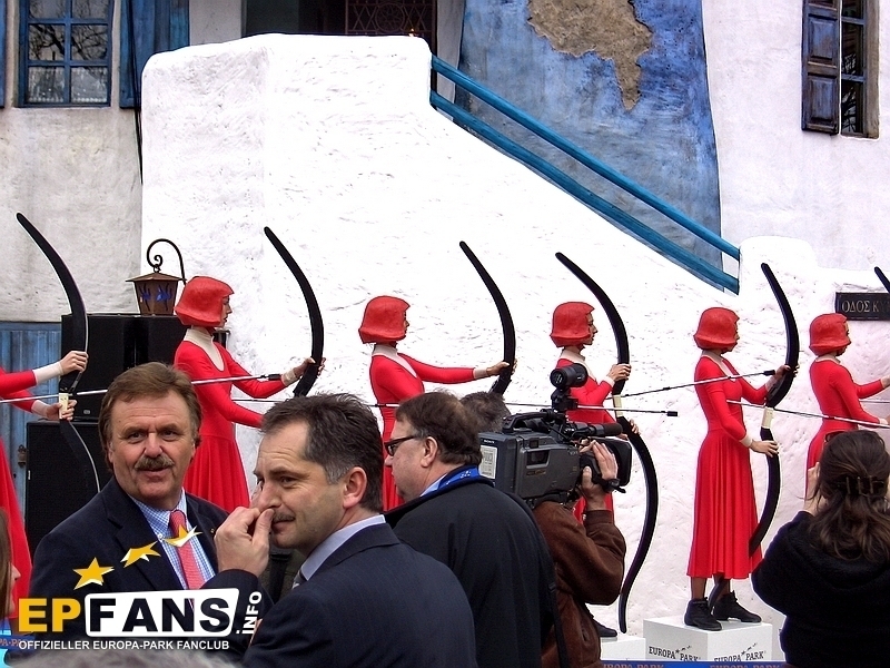 Pressekonferenz 2007Hier die Neuerungen von 2007 die am 29.März der Presse vorgestellt wurden.Abenteuer Atlantis Der Europa-Park hat heute seine neueste Attraktion vorgestellt: Abenteuer Atlantis. Dieser interaktive Darkride führt die Besucher im griechischen Themenbereich in die Welt der Tiefsee-Ungeheuer, vorbei an Haien und Krabben gilt es das Abenteuer zu bestehen. Zusammen mit Expeditionsleiter Professor Carter und seinem Helfer T-01, einer Wasserschildkröte, begeben sich die Expeditionsteilnehmer in einer der 360° drehbaren Gondeln, die mittels Joystick selbst gesteuert werden können. Dann heisst es auch schon Laserharpune anlegen und Punkte sammeln! Insgesamt gibt es 6 Themenwelten: Korallenriff, Schifffriedhof, Vulcano, Tiefsee, die versunkene Stadt Atlantis und die Schatzkammer. Die Kapazität der neuen Anlage beläuft sich auf 1600 bis 1800 Personen pro Stunde und befährt die 120 Meter Schienenlänge mit 0,4 Meter pro Sekunde. Onride Video von Atlantis Science House Seit 6 Jahren gibt es im Europa-Park schon die Science Days. Ab dieser Saison können Schülergruppen nun ganzjährig experimentieren und forschen. Auf 1000 qm laden 80 interaktive Experimente zum Ausprobieren und Entdecken ein. Mykonos Seit 2001 gibt es den griechischen Themenbereich in Rust bereits. In diesem Jahr wurde er aber deutlich erweitert. Die neu entstandene pittoreske Gasse, hinter deren abwechslungsreicher wie landestypischer Fassade sich das Eis-Stadion verbirgt, lässt nun für die Besucher eine Fülle atmosphärischer Eindrücke entstehen. Es entstanden zusätzliche sanitäre Einrichtungen sowie der neue "Atlantis-Shop". Schwarzwälder Vogtshaus Eines der ältesten Fachwerkhäuser des Markgräflerlandes ist der neue Blickfang am Ende der deutschen Allee. Italienischer Themenbereich Neben der Erweiterung der Pizzeria und dem Neubau einer Eisdiele sticht insbesondere die aufwändige Neugestaltung samt Foyer des "Teatro dell Arte" ins Auge. Das Theater bildet somit den stilvollen Rahmen für die neue Show "Emozione". Mercedes Benz Hall Dieses Jahr steht die Ausstellung in der Warteschlange von Silverstar ganz unter dem Motto: Zeitreise durch das automobile Zeitalter. Darunter befindet sich auch das erste Automobil der Welt von 1886 dem Benz Patent-Motorwagen.
