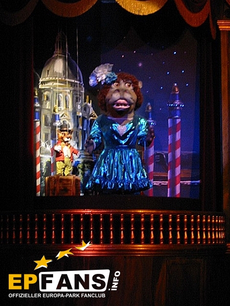Euromaus Musikrevue / Magic Music ShowDiese Animatronic-Show hat sich in der Wintersaison 2002/2003 von den EP-Besuchern verabschiedet. An ihrer Stelle befindet sich seit der Sommersaison 2003 das Kindertheater, welches zuvor im italienischen Themenbereich beheimatet war. Die Show wurde erstmals im Jahr 1985 dem Parkpublikum präsentiert. Damals wurde sie unter dem Namen "Euromaus Musikrevue" eröffnet. Im laufe der Jahre wurden einige Figuren ausgetauscht und das Programm überarbeitet. Nach dieser Umgestaltung trug die Attraktion den Namen "Magic-Music-Show".