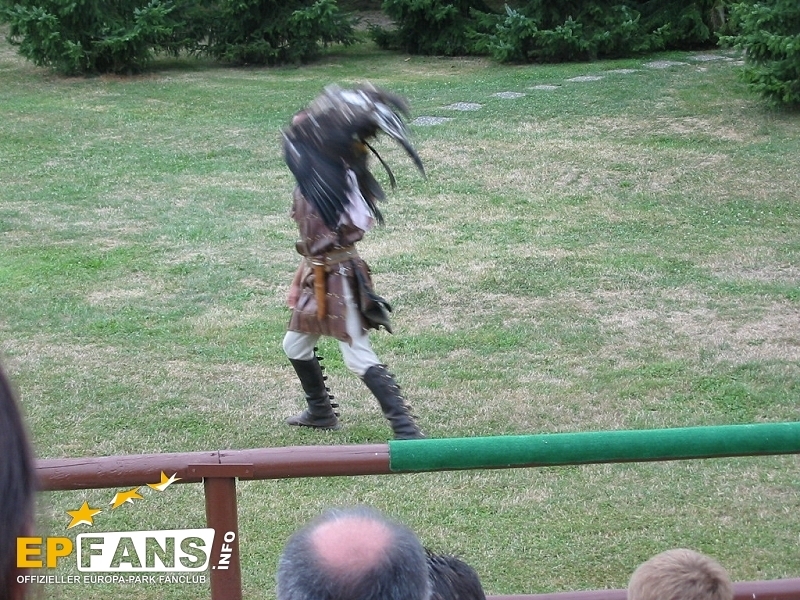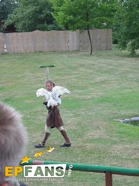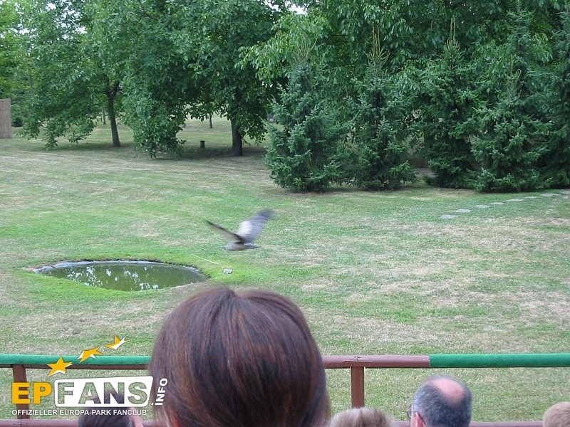 GreifvogelpräsentationDer Europa Park präsentierte bis zur Saison 2004 auf der Fläche zwischen dem spanischen Themenbereich und dem skandinavischen Themenbereich eine Greifvogelpräsentation. In dieser wurde vom Adler bis zum Geier einiges geboten. Tiefflüge über das Publikum und Vögel zum Anfassen in den Zuschauerreihen sorgten für ein interessantes und abwechslungsreiches Programm. Für den Neubau des portugisischen Themenbereiches musste diese Show leider weichen. Die Zuschauertribühne befindet sich bisher immernoch im Park und bietet einen direkten Blick auf die Attraktion Atlantica.
