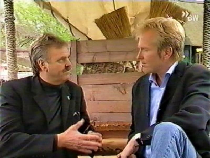 Treffpunkt bei...In dieser Sendung wurde viel mit Roland Mack persönlich gesprochen. Man bekam viele interessante Interviews zu hören... Auf die Frage, woher er die Energie hat, um den Europa-Park aufzubauen, antwortet er, es sei zur einen Hälfte Erbgut, zur anderen Ehrgeiz.Schaue einmal auf das dritte Bild, ein sehr spannendes Foto. Auf diesem Plan des griechischen Themenbereichs ist eine Bahn zu sehen, die im Park noch nicht vorhanden ist. Sie fährt hinter dem Tempel durch, und geht bis hinter die Eurosat-Kugel. Ist das eine neue Achterbahn? Die langen gerade Strecke (mit up and downs) und die Schleife am einen Ende deuten auf eine Holzachterbahn hin. Meiner Meinung nach ist das Rechteck (mitte-links) der Einstieg. Die Bahn fährt nach oben-recht los, macht eine 180°-Kurve und fängt an zu steigen. Dank dem Höhenunterschied besteht auch kein Problem mit dem EPE. Das sind aber alles nur Hypothesen und sind überhaupt nicht offiziell. Der Europa-Park selber hat gesagt, das sei ein Bauplan für Poseidon und hätte nichts mit einer neuen Achterbahn zu tun. In die Hotelerie einzusteigen war ein "kluger Schachzug" der Familie Mack. Die Hotels sind äusserst erfolgreich. Sie sind zu mehr als 90% ausgebucht. Die meisten Mitarbeiter mögen ihren Chef gut. Roland Mack erzählt es liege am langjährigen Motto der Familie Mack: "Feste schaffen und Feste feiern". Der Europa-Park soll ein Familienpark sein. Deshalb müssen Attraktionen für die Kleinen, aber auch für die Grosseltern im Park sein. Natürlich baut die Familie Mack für die "16-jährigen" auch rasantere Fahrten. Der Künstler Ulrich Damrau hat die meisten Themenbereiche des Europa-Parks geschaffen. Alles sind Unikate, sogar die kleinste Skulptur. In Griechenland war er vor allem für das Gebäude der Kassandra verantwortlich. Diese sehr interessante Sendung über Roland Mack wurde am 26. Juni 2000 auf SW3 BW ausgestahlt. Alle Bilder sind Eigentum des genannten Senders.