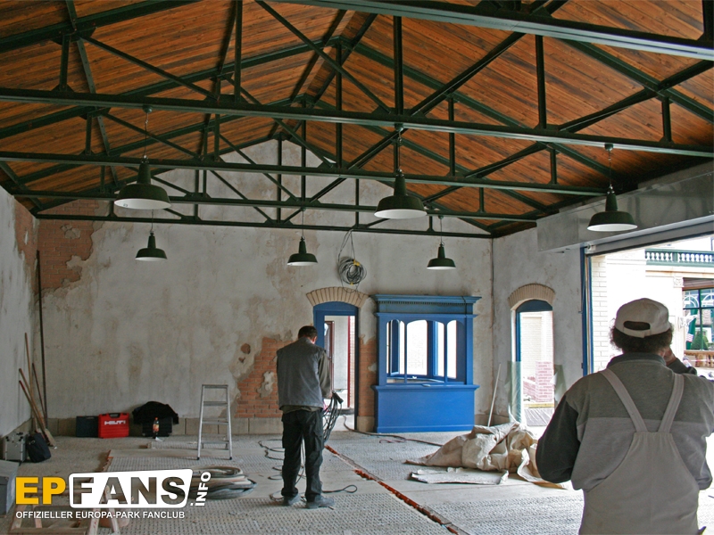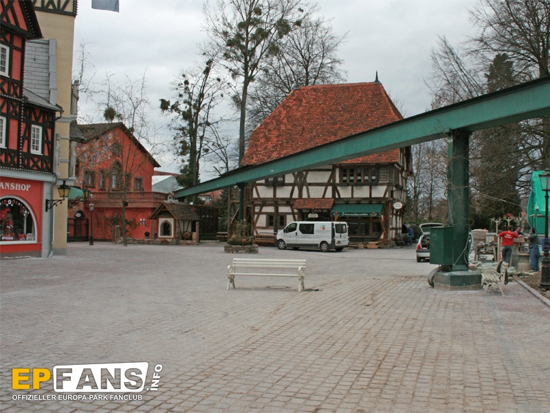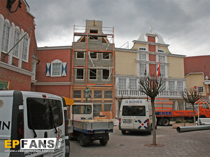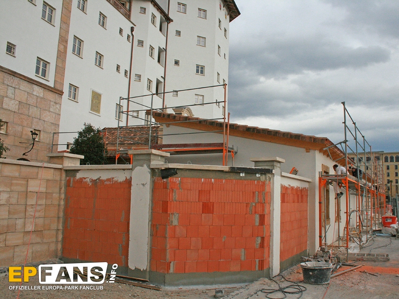 Das neue Restaurant im holländischen Themenbereich ist noch voll im Bau und man ist beeindruckt von der Grösse. Wer die Piraten in Batavia kennt und sich an die letzte Kurve erinnert, wird nicht vermuten, dass dort so viel Platz vorhanden ist. Auf 3 Ebenen wird hier das Flair des Dschungels Einzug erhalten. Für die Option einer Dinner-Show wird, getrennt durch den Fahrkanal, eine kleine Bühne entstehen. Der Zugang wird sowohl separat als auch über den Ausstieg der Piraten in Batavia möglich sein. Das Dschungel-Feeling wird durch eine aus Bali importiere originale Bestuhlung aus Teak-Holz abgerundet. Im Kinderland haben sich viele Farben geändert und der Kutter hat wieder seinen ursprünglichen Namen zurückerhalten. Der Leuchtturmspass ist nun auch in einem rot-weissen Anstrich versehen und die Seelöwen winken den kleinen Besuchern ebenso in einem neuen Gewand zu. Das Dino-Karusell wurde im Stile der Wikinger überdacht und mit Schindeln abgedeckt. So kann auch bei schwieriger Witterung eine Fahrt gewagt werden ohne nass zu werden. Im englischen Themenbereich waren die Arbeiten auch in vollem Gange. Der Boden wird fertiggestellt und die Anschlüsse für die Attraktionen Crazy Taxi und London Bus gelegt. Schon jetzt ist die beachtliche Grösse des Platzes dort sehr auffällig. Man kann gespannt sein, wie der Platz das Gesamtbild des englischen Themenbereichs abrundet, der bereits 2006 ein Remake erhalten hatte. Im Eingangsbereich des Europa-Park wurde auch einiges geändert. So führt nun die deutsche Allee direkt auf den Zentralen Eingang des Schlossparks. In der Verlängerung der Strasse wurde am Ufer der Elz eine Statue des Gründers des Europa-Park, Franz Mack, errichtet. Der Platz zwischen Mario`s Pizza und dem Vogtsbauernhof hat sich deutlich verbreitert. Gerade in den Abendstunden ist hier nun also genügend Platz zur Verfügung. In Frankreich wurden einige Fassaden renoviert und der Konferenzsaal überhalb von Chez Marianne neu gestaltet. Die Turbo Ralley erhält nun einen neuen Platz vor der Mercedes-Benz-Hall, so dass die kleinen Besucher hier die Möglichkeit erhalten, mit den Autos um die Wette zu fahren. Das waren einige der Eindrücke die wir auf unserem Rundgang mit Michael Kreft von Byern (Beauftragter der Geschäftsführung) sammeln konnten. Wir hoffen dass ihr damit einen kleinen ?berblick über die Neuheiten 2008 erhalten habt und freuen uns zusammen mit Euch auf die Saison 2008.