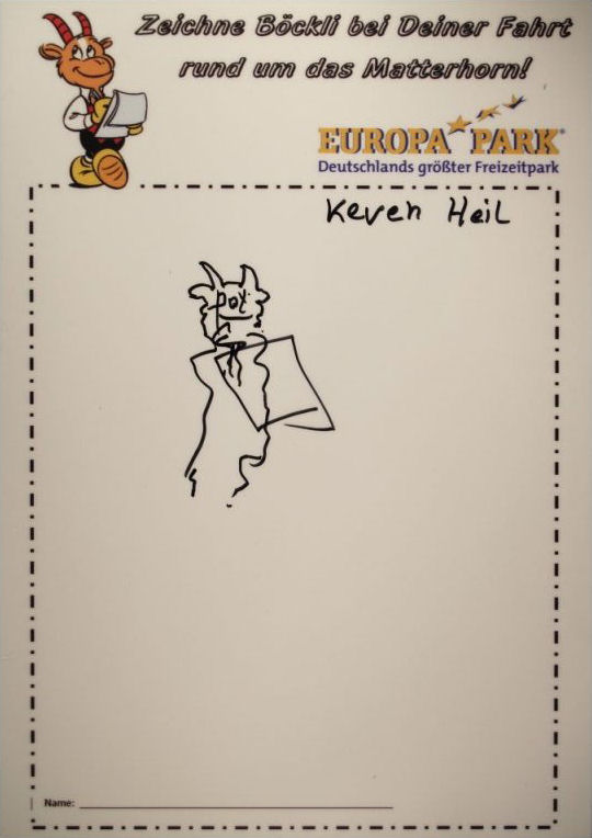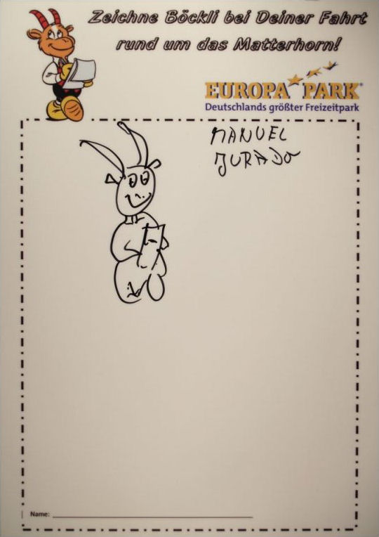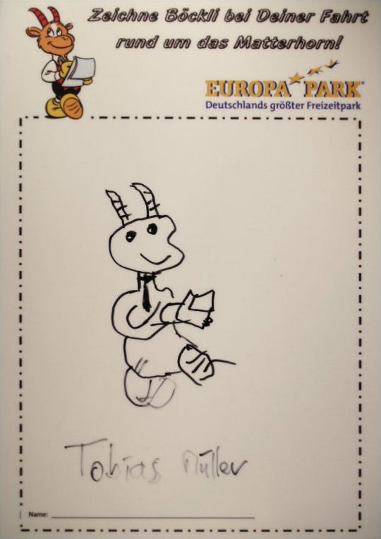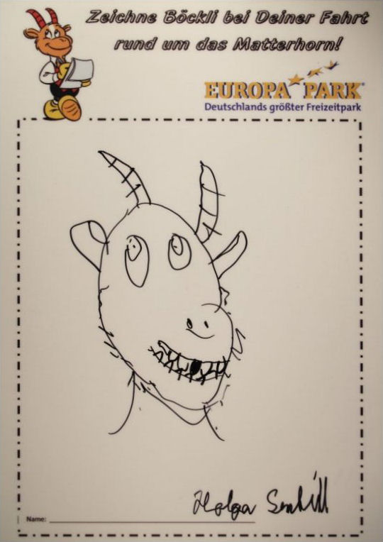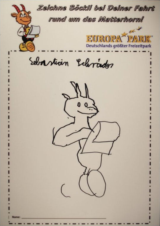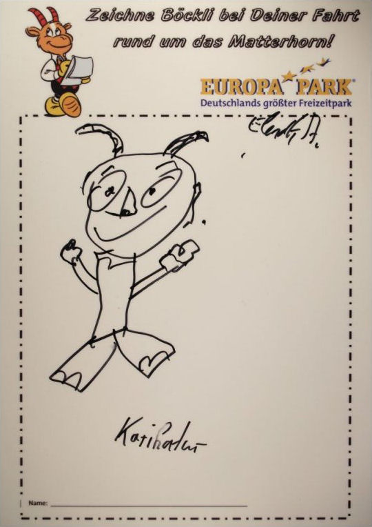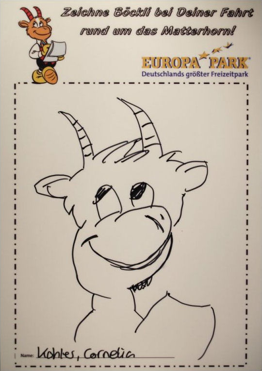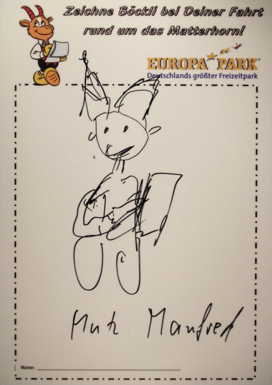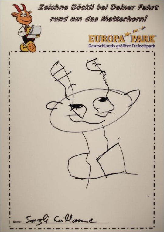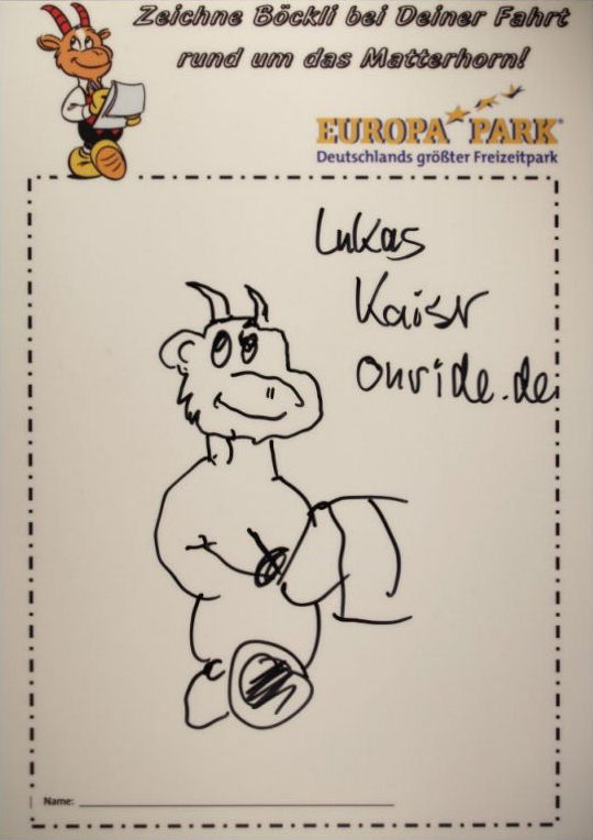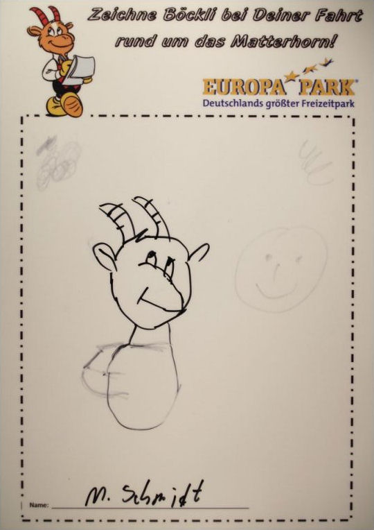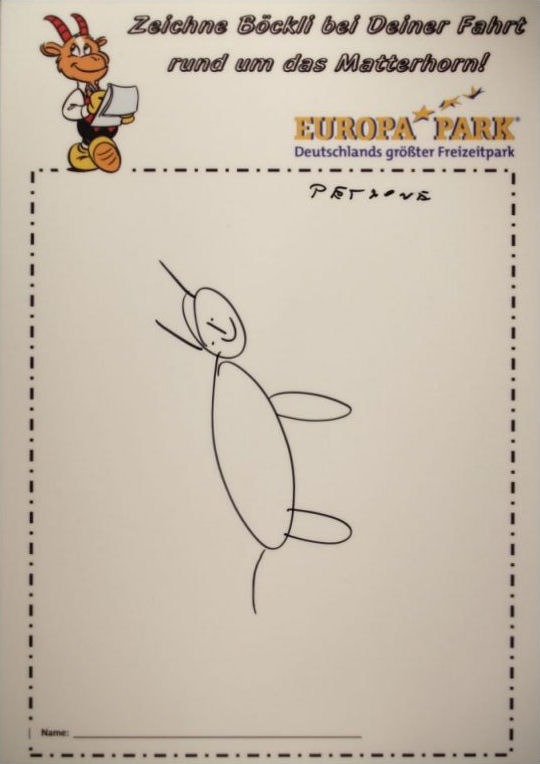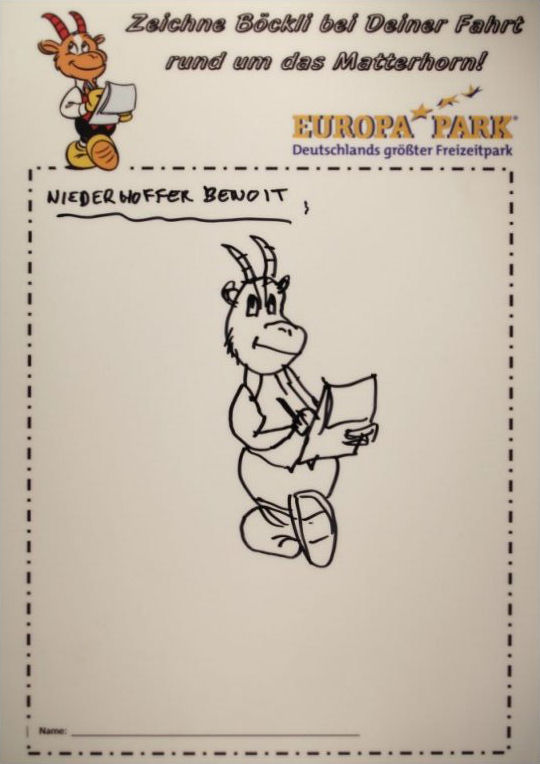 coasterbaer: 07.05.2008 - 18:20 E-N-D-L-I-C-H !!! Habe schon befürchtet,diese Kunstwerke wären für immer verschollen gewesen. Was man den Bildern leider nicht ansehen kann, ist der Spa?, den wir bei der "Kunststunde" auf dem Matterhorn-Blitz hatten. Auch wenn Zeichnen nicht zu meinen Steckenpferden gehört: Böckli malen während der Achterbahnfahrt - das war die stärkste Idee, die Ihr bisher auf einem Fantreffen hattet. Ich habe Tränen gelacht bei der Fahrt. Freue mich schon auf's nächste Treffen und zittere schon jetzt, dass ich Zeit habe, wieder dabei zu sein.