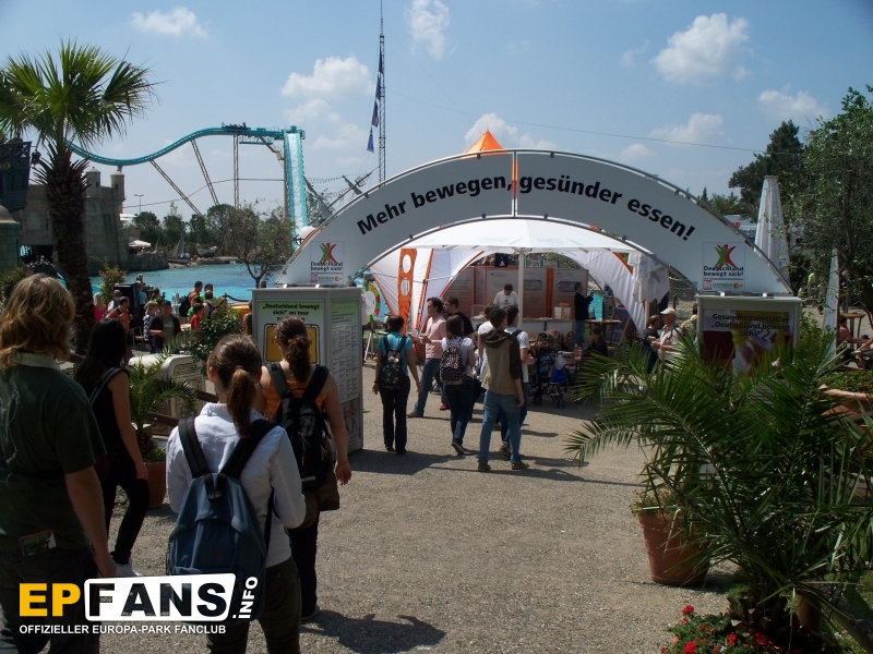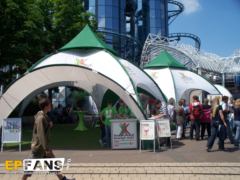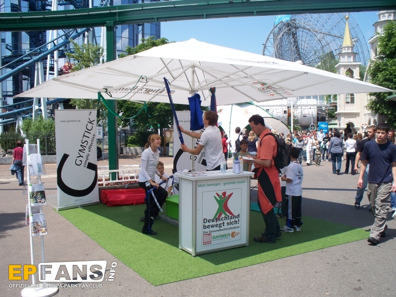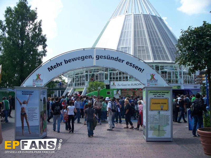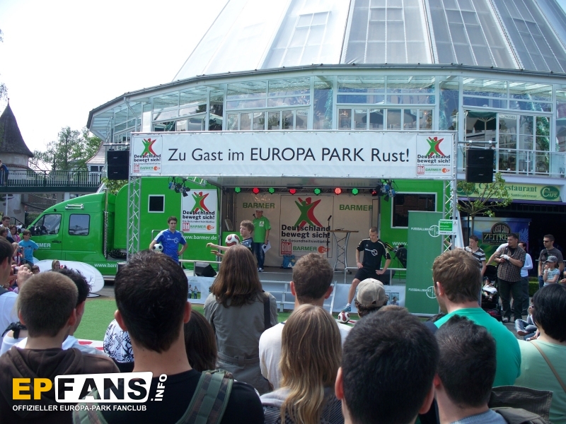 Deutschland bewegt sich! On tour im Europa-Park - die gro?e Gesundheitsinitiative der Barmer Krankenkasse, der Bild am Sonntag und des ZDF. Mehr bewegen, gesünder essen! So lautet das Motto der Veranstaltung für ein besseres, gesünderes und längeres Leben. Im Park verteilte Stationen laden zum Mitmachen ein, egal ob Jung oder jung geblieben hier ist für jeden etwas dabei. Vom Torwandschie?en, Klettern, Golfen über Trampolin springen hinweg zu Badminton, Tischtennis und jede Menge weiterer Aktionspunkte. Noch bis zum 25. Mai kann man sich im Europa-Park sportlich betätigen. Anbei einige Impressionen der Aktion. Weitere Informationen auch unter europapark.de Euroball wieder geöffnet. Frankreich - Wo man früher einen Ball in das richtige Loch treffen musste, zog über die Zeit der Terenzi Horror Nights 2007 ein Fanshop ein, es folgte ein Adidas Shop in dem reduzierte Ware käuflich zu erwerben war. Danach folgte einige Zeit nichts. Seit neustem sind dort nun einige Spielautomaten zu finden. Unter anderem auch einige ?berbleibsel der ehemaligen Spielhalle England.