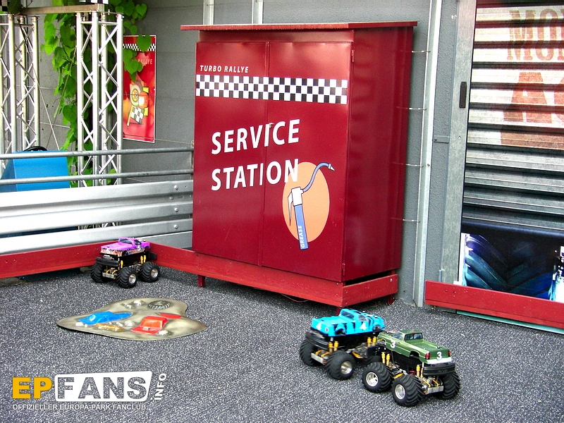 Ferngesteuerte Alpha ModsFrankreich - Von 2008 bis 2017 gab es die Europa-Park Turbo Rallye im französischen Themenbereich. Sie befand sich an der Hinterseite der Eurosatkugel gegenüber der Mercedes Benz Hall. Im Zuge der Umgestaltung der Eurosat verschwand sie dort. Im Herbst 2018 tauchte sie im Park wieder auf. Von 2018 bis zur Wintersaison 2019/2020 konnten die Besucher im Themenbereich Abenteuerland neben der dortigen Toilettenanlage mit ferngesteuerten Trucks über Schanzen springen und waghalsige Stunts absolvieren. Seit der Saison 2020 sind sie wieder an ihrem ursprünglichen Standort hinter der Eurosatkugel mit Alpha Mods "Thematisierung" zurück gekehrt.