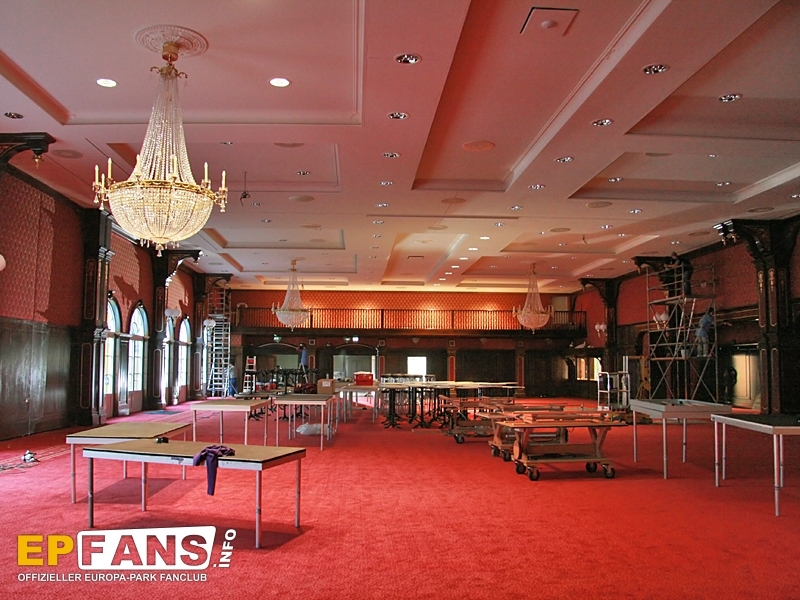 |  |  |  | Der neue FestsaalDie bekannte Tagungs- und Veranstaltungsräumlichkeit im Europa-Park - der "Festsaal", direkt an der Deutschen Allee in unmittelbarer Nähe zum Haupteingang gelegen - befindet sich derzeit im Umbau und erstrahlt in neuem Glanze als NEUE Location im November 2008.Im Stil des Neoklassizismus erbaut, wird der neue Festsaal begeistern in seiner Architektur unter Verwendung von Dekorationselementen, die vor allem das 19. Jahrhundert prägten. In prachtvoller Umgebung - prunkvoll in Rot und Gold gehalten - lässt es sich auf 800 qm hervorragend tagen und feiern. Durch eine mobile Trennwand lässt sich der Festsaal in zwei Räume teilen: in einen Saal mit 425 qm und in einen kleineren Raum mit 387 qm. Dem neuen Festsaal gehört auch ein Foyer bei, welches mit 180 qm zusätzlichen Raum für Tagungs- und Veranstaltungsmöglichkeiten bieten wird. NEU wird auch der Zugang zum Festsaal sein: entweder direkt über den Haupteingang - ohne diesen letztendlich passieren zu müssen - ins Foyer oder über die Deutsche Allee durch den seitlichen Eingang direkt in den Festsaal. Auch durch seine unmittelbare Anbindung an die weiteren Confertainment-Locations "Teatro dell`Arte" und "Medienhalle" wird der neue Festsaal eine ideale Plattform für Tagungen und Veranstaltungen im Europa-Park sein.