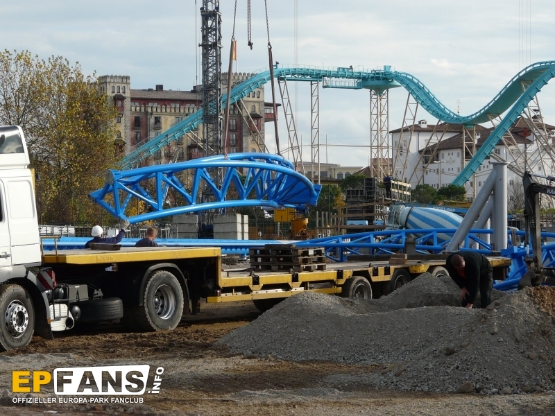 | 25.11.2008: | Erste Teile der Kurve nach dem Looping wurden montiert |