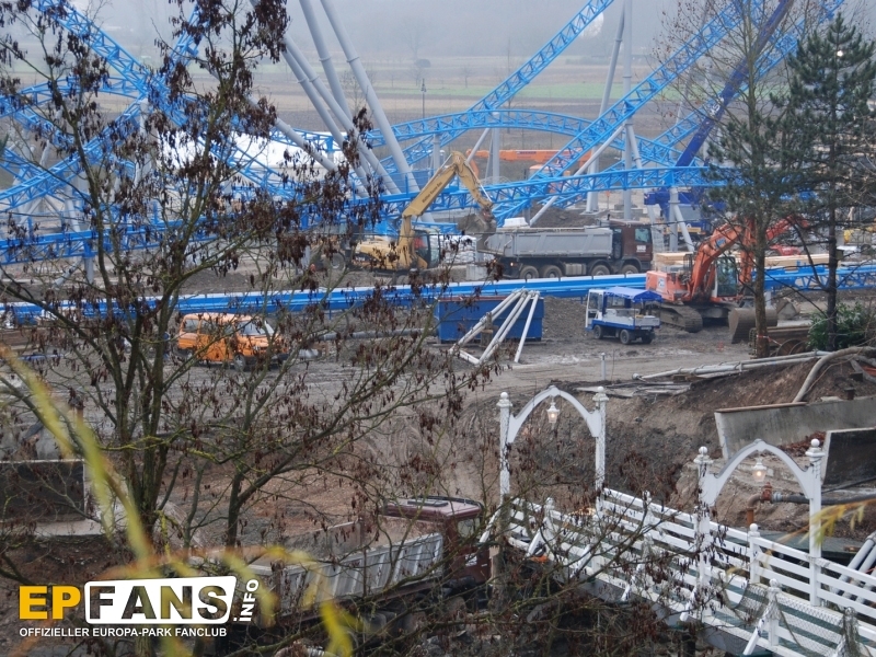 | 17.11.2008: | Aufschüttarbeiten haben begonnen, Montage erster Abschussmodule, weitere Bauarbeiten am Darkrideteil |