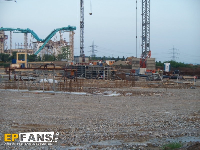 EP_Fan_007: 29.08.2008 - 20:27 Stimmt, die Fotos sind noch nicht sehr aussagekfäftig, trotzdem muss man sagen, dass die Bauarbeiten ziemlich schnell vorangehen. Zu der Achterbahn-Grö?e: Ich glaube, dass das so eine Achterbahn wird, die in sich verschlungen ist. Mit Schrauben und Loopings...^^