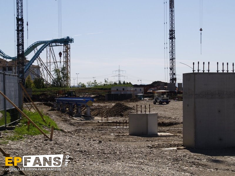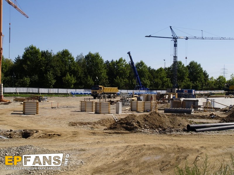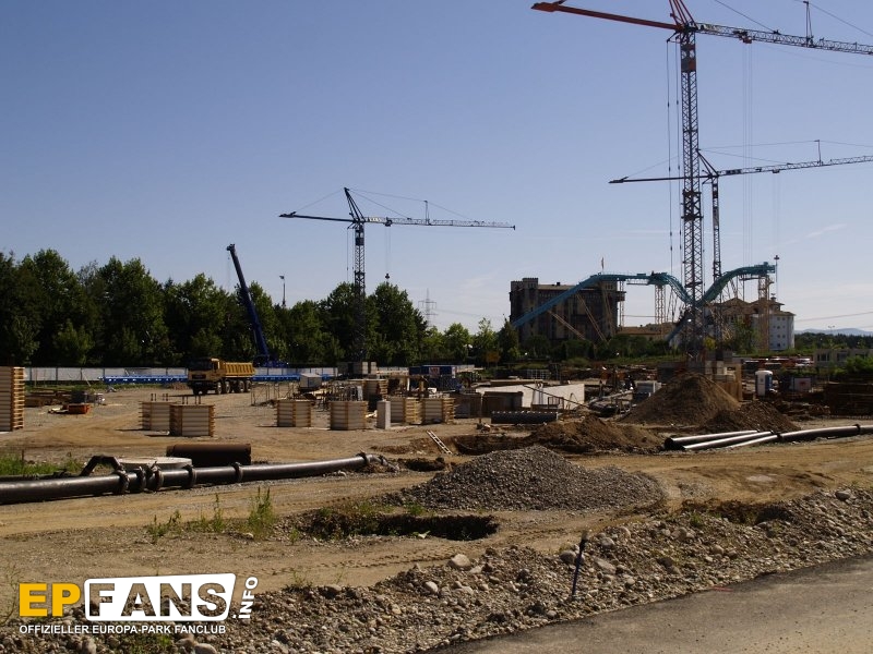 Ein gro?er blauer Kran versperrt seit dem frühen Morgen die Ausfahrt vom Besucherparkplatz, vorbei am Verwaltungsgebäude Richtung Hotels und Autobahn. Was da wohl passiert? Es liegt klar auf der Hand: Montagebeginn der neuen Achterbahn für 2009! Doch nun viel Spa? beim betrachten der Bilder.