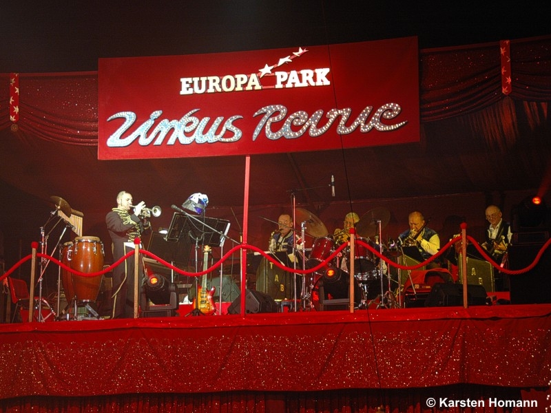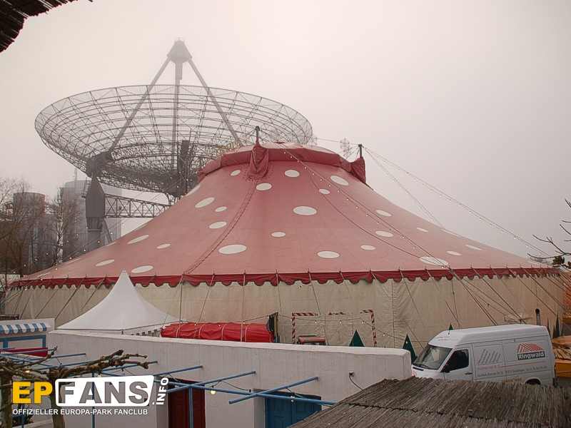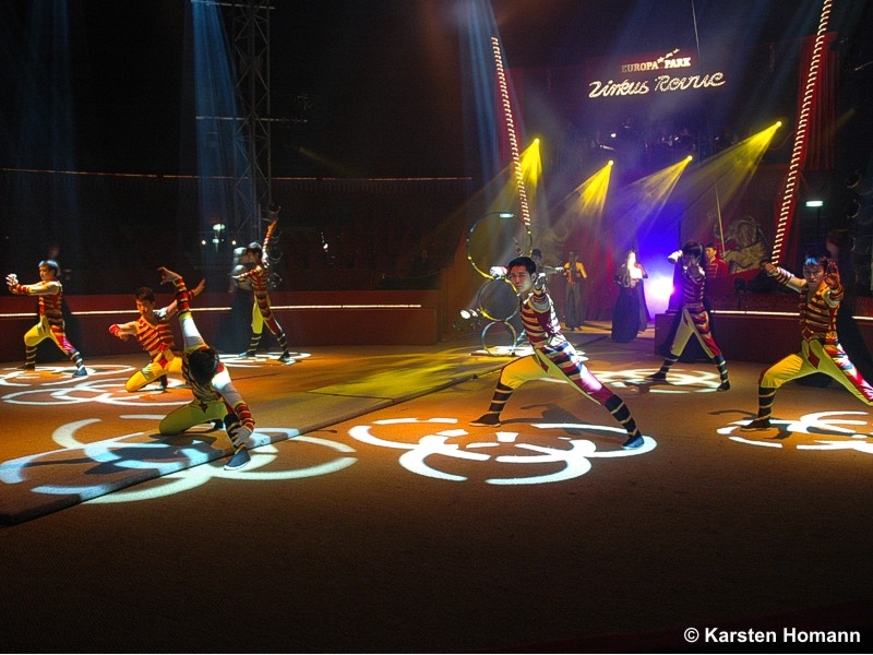|  |  |  | Winterzirkus 2008/2009Seit einigen Jahren zeigt der Europa-Park in der Wintersaion in einem Zirkuszelt auf dem Festival Gelände eine Zirkus-Revue mit zahlreichen international bekannten Artisten. Das Zelt stellte in den vergangenen Jahren der Circus Fliegenpilz zur Verfügung. Es hatte einen Durchmesser von 44 m und 2200 Schalensitze.In diesem Winter präsentiert der Europa-Park wieder einen bunten Mix aus Tier-und Artistiknummern. Die Show beginnt mit einer Pferdedressur von Stephanie Probst. Danach folgt Desire of Flight. Dies ist eine Strapaten Nummer. Mit Partnerakrobatik geht es anschließend weiter. Die Künstler, die bereits bei der Sommer Varieté Show zu sehen waren, zeigen im Winter nochmals ihr Können in der Zirkusmanege. Zwischendurch ist auch ein Clown und das Europa-Park Showballett zu sehen. Das Programm wird komplettiert mit einer Hundedressur und einer chinesischen Akrobatik Gruppe, die durch Ringe springt.