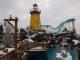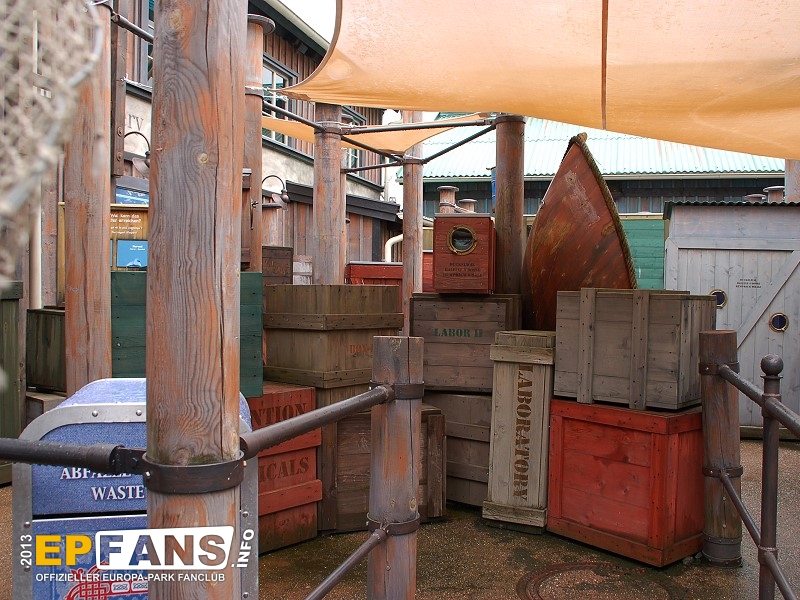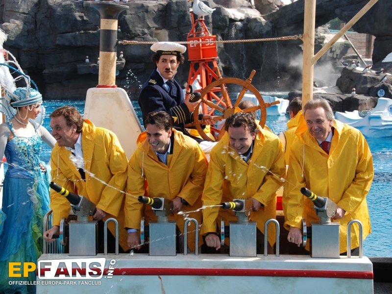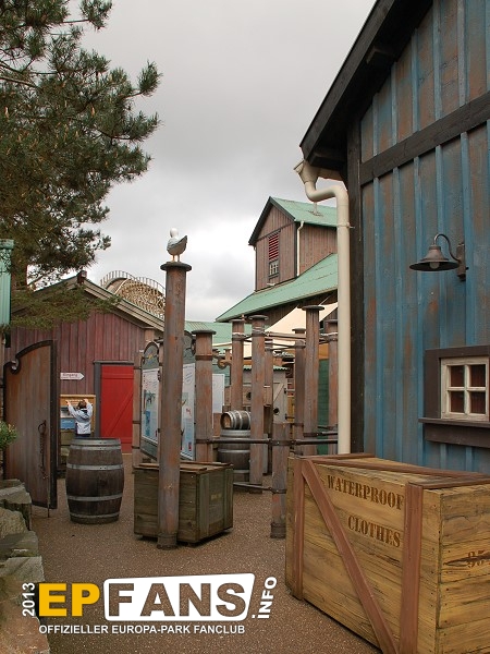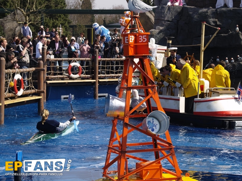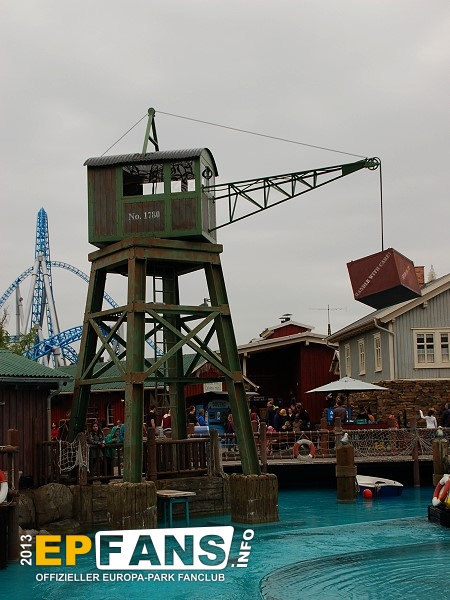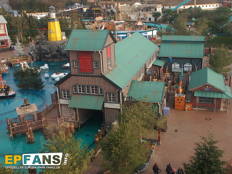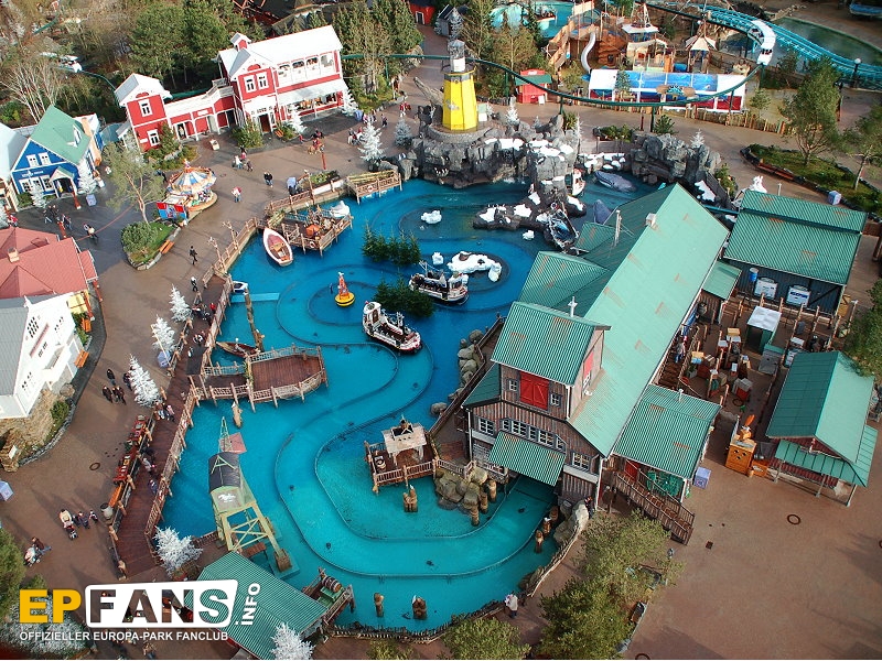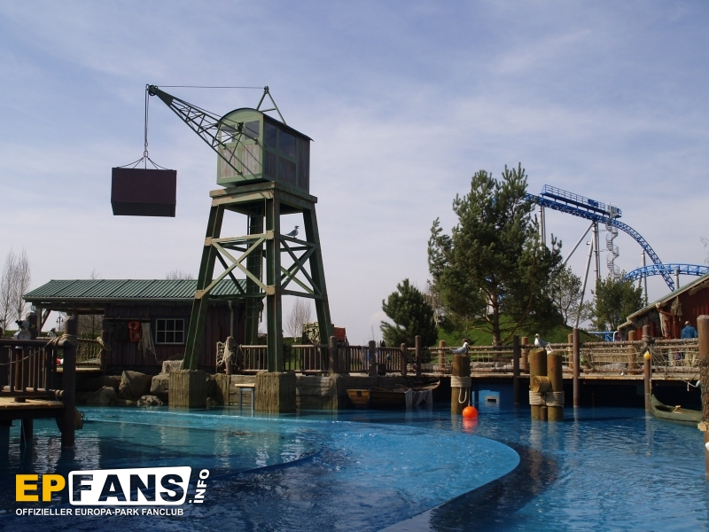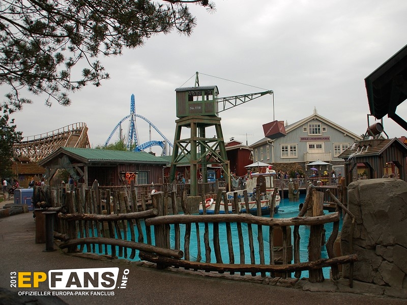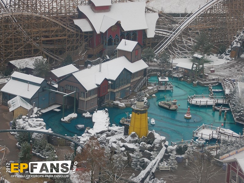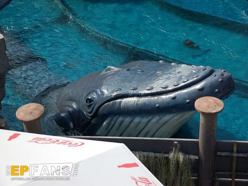 Whale Adventures - Splash ToursDie im Jahr 2010 im Themenbereich Island eröffnete interaktive Bootsfahrt bot ein spritziges Vergnügen für jung und alt. Mit Hilfe von Wasserkanonen, die durch Ankurbeln betätigt wurden, sollten in erster Linie die Zielscheiben während der Fahrt getroffen werden. Sie waren jedoch auch ein wichtiges Abwehrmittel gegen die Wasserkanonen, die entweder von anderen Boote oder von außen von den zuschauenden Parkgästen auf das eigene Boot gerichtet wurden. Das Gepäck wie z.B. ein Rucksack konnte in den Booten wassergeschützt verstaut werden. Die Strecke startete im Hafen und führte vorbei an Eisschollen mit Robben. Kurz vorm Ende passierte man einen Felsen mit zahlreichen Papageientauchern und fuhr anschließend noch an den Walen vorbei, bevor der Hafen wieder erreicht wurde. Ein 12 m hoher Leuchturm gehörte ebenfalls zur Kulisse dieser Attraktion. In der darunter liegenden Grotte führte eine Wendeltreppe hinauf auf die im Erdgeschoss des Leuchtturms liegende Aussichtsplattform. Von hier hatte man einen herrlichen und trockenen Ausblick auf die gesamte Anlage.