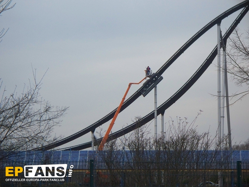 Die Saisoneröffnung steht kurz vor der Tür, Zeit also die Attraktionen langsam aus ihrem Winterschlaf zu wecken und erste Testfahrten durchzuführen. Nachdem an den Bremsen noch einmal letzte Hand angelegt wurde, konnten die Züge der Achterbahn Silver Star ihre ersten Runden auf der Strecke absolvieren.
