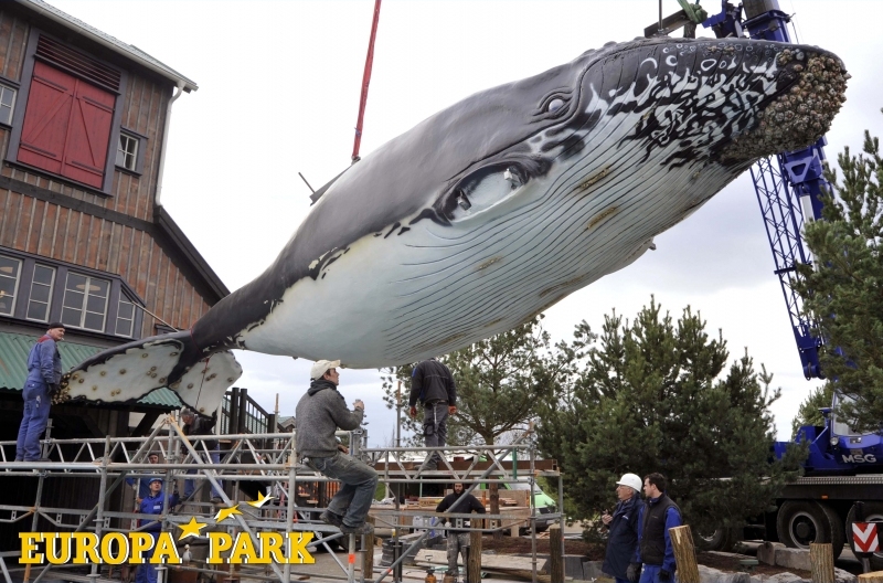 Was man von fliegenden Walen lernen kann...Der Europa-Park macht das Unmögliche möglich. Hier kann sogar das grö?te Säugetier der Welt fliegen. Am Samstag, 20. März 2010 war Waltag in Deutschlands grö?tem Freizeitpark. Für die neue interaktive Bootsfahrt "Whale Adventures - Splash Tours" wurde ein riesiger Wal an einem Kran durch die Luft bewegt, um schlie?lich im Bahnhof der Familienattraktion platziert zu werden.