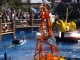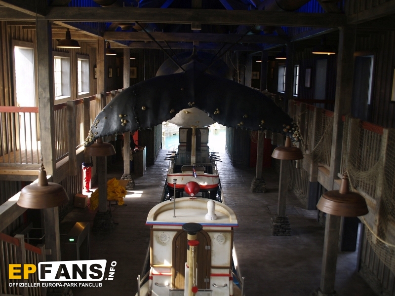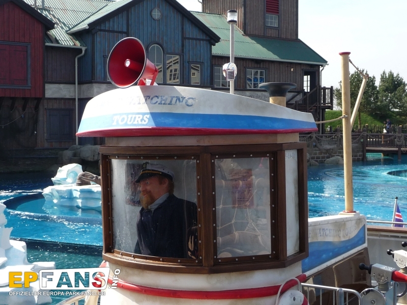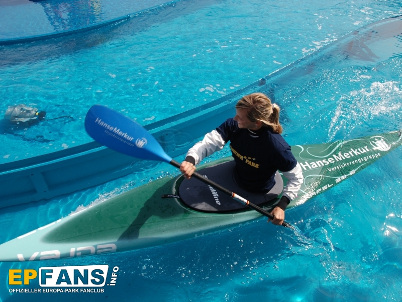 Im Bereich von "Whale Adventure - Splash Tours" startete eine weitere Showdarbietung rund um das Element "Wasser" bevor die Attraktion feierlich getauft wurde. Dies übernahm die Kanu-Weltmeisterin Jasmin Schornberg, die stilecht in ihrem Sportgerät die Bahnen der Splash-Tours-Boote kreuzte und die Sektflasche gegen das Jungfernfahrt-Boot mit der Familie Mack an Bord schlug.