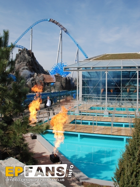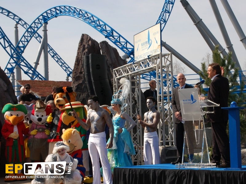 Nach einer kurzen Einführung durch Roland Mack und Burkhard Woelki, dem Direktor für Marketing und Unternehmenskommunikation von GAZPROM Germania GmbH folgte die feierliche gemeinsame Betätigung des Startknopfes. Hunderte von blauen Luftballons starteten zeitgleich mit einem Feuerwerk und einer Show der Wasserfontainen. Ein synchron gestarteter "blue fire Megacoaster"-Zug unterstrich die Bedeutung der Energieexplosion, die mit diesem Ereignis freigesetzt wurde.