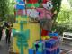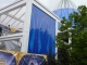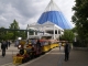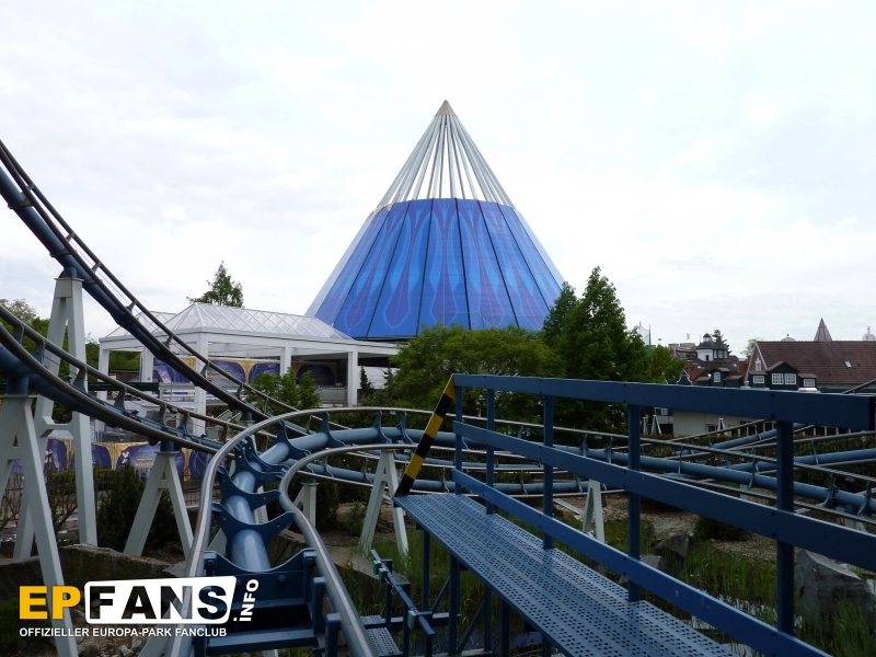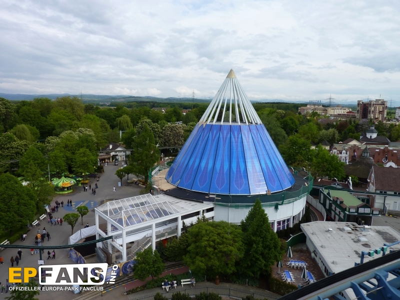 Die Abschattung dürfte vor allem in den Sommermonaten erhebliche Vorteile bringen, da sich das Gebäude nicht mehr so schnell aufheizen wird, wie zu Zeiten der transparenten Verglasung. Die Baustelle um das Gebäude herum hat sich allgemein etwas verkleinert. Der Baustellenzaun reicht nun nur noch um den Bereich der Treppenaufgänge zum Restaurant und zur Monorail-Bahn. Der Brunnen vor der Pyramide kann wieder voll genutzt werden und sorgt bereits für spritzige Momente. Eine weitere "Neuheit" kann man seit einigen Tagen bei der Europa-Park-Parade erleben: Anlässlich des 35-jährigen Geburstages des Parks hat ein neuer Paradewagen seine Arbeit aufgenommen und bietet nun Platz für die Euromaus und ihre Freunde. UPDATE: Heute (04.05.2010) wurde damit begonnen den Vorbau des Historama mit weiteren blauen Elementen zu schlie?en.