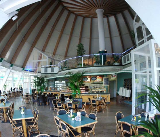 Seit einigen Tagen haben nun auch das Restaurant, der Milka-Shop und die Monorail-Station wieder geöffnet. Aufgrund der jetzt lichtgeschützten Verkleidung wurde es im Inneren der Pyramide etwas dunkler. Der Restaurantberieb leidet dadurch jedoch nicht, die gro?en Panoramafenster lassen immer noch genug Licht in das Gebäude: