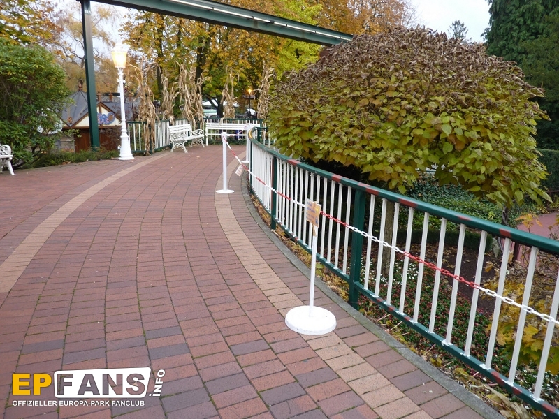 Derzeit wird im Park auch wieder der Pinsel geschwungen. Im Bereich der Rampe direkt neben dem Europa-Park Historama wird das Geländer gestrichen.