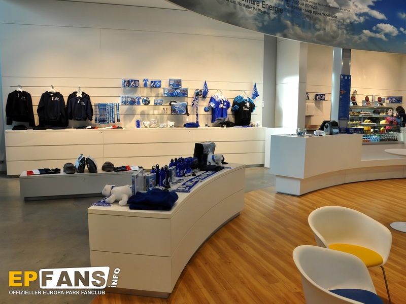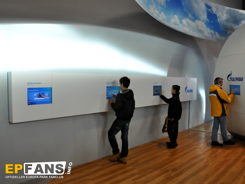 An der Wand wurden weitere Touch-Bildschirme montiert, von wo aus die e-cards versandt werden können. Weiterhin werden GAZPROM-Artikel (u.a. Fanartikel von Schalke) nun zusätzlich auf einem halbrunden Tisch neben der Gastrofläche angeboten.