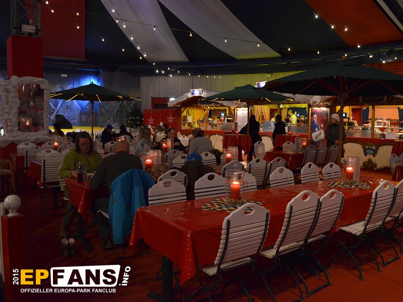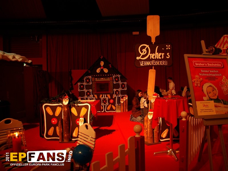 Weiterhin gab es hier einen Schminkstand und eine Weihnachtsbäckerei bei der die Kinder selbst mitbacken konnten. Einige Holzhütten sorgten für das gastronomische Angebot, ausreichend Sitzmöglichkeiten waren selbstverständlich.