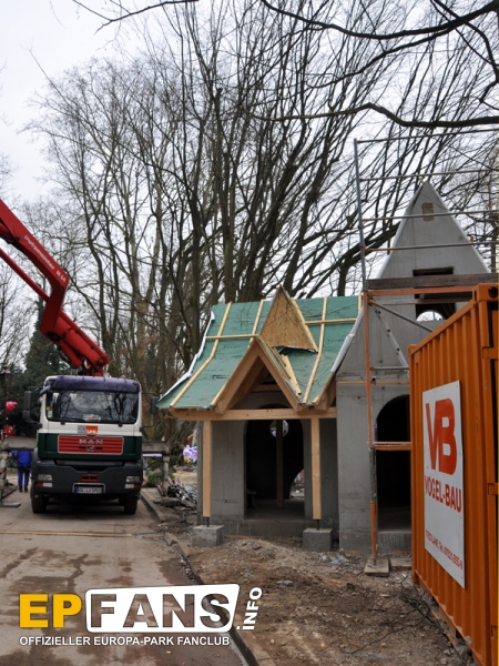 Teil 1 der Baustellentour führt uns zur neu errichteten Märchenallee, wo ein Gebäude nach dem anderen erstellt wird. Während ein paar der Märchenbauten bereits schon im Laufe der Wintersaison die Fundamente und die Grundmauern erhielten, wurde mit dem Bau des Dornröschenschlosses zwischen Fu?weg und Panoramabahn erst Mitte Januar begonnen: