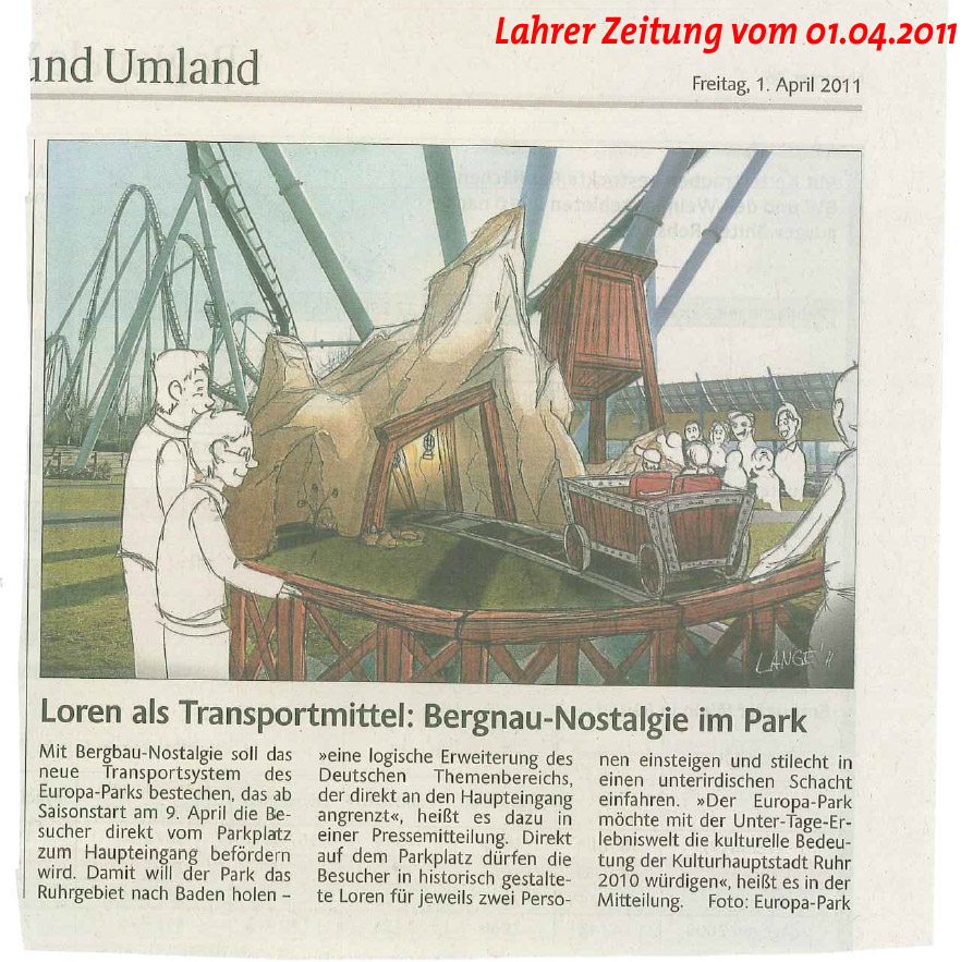 Sehr geehrte Damen und Herren, mit Bergbau-Nostalgie und modernster Technik besticht das neue Transportsystem des Europa-Park, das ab Saisonstart am 9. April 2011 die Besucher direkt vom Parkplatz zum Haupteingang befördern wird und damit einen spektakulären Start in einen Tag voller Abenteuer bietet. Deutschlands grö?ter Freizeitpark in Rust bei Freiburg holt das Ruhrgebiet damit nach Baden - eine logische Erweiterung des Deutschen Themenbereichs, der direkt an den Haupteingang angrenzt. Direkt auf dem Parkplatz dürfen die Besucher in historisch gestaltete Loren für jeweils zwei Personen einsteigen und stilecht in den unterirdischen Schacht einfahren. Der Europa-Park möchte mit der Unter-Tage-Erlebniswelt nicht nur ein weltweit neuartiges Transportsystem bieten, sondern auch die kulturelle Bedeutung der Kulturhauptstadt Ruhr 2010 würdigen und damit den Deutschen Themenbereich aufwerten. Vorbei an schimmernden Flözen windet sich das Schienennetz bis zu vier Meter unter der Erde unter den parkenden Autos der Besucher hindurch. Die besondere Schwierigkeit beim Bau des neuen Beförderungsmittels lag darin, die niedere Grundwasserhöhe zu umgehen. Bereits nach wenigen Metern Fahrtstrecke wird die erste Grundwasserschicht durchbrochen, um die Bahn auf tragfähigen Boden zu lenken. Die faszinierend gestaltete Bergbau-Idylle bildet nicht nur eine authentische Kulisse für ein spannendes Fahrerlebnis noch vor Eintritt in den Europa-Park, sondern soll auch zeigen, dass in Zukunft verstärkt auf neue Besucher aus Nordrhein-Westfalen gesetzt wird. Auf über hundert Metern zeigt sich das Revier von seiner romantisch-charmanten Seite und lässt die Besucher echte Bergbau-Luft schnuppern. KommentareDu musst eingeloggt sein um Kommentare schreiben zu können!