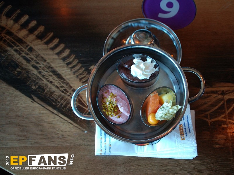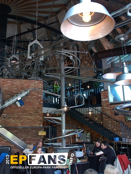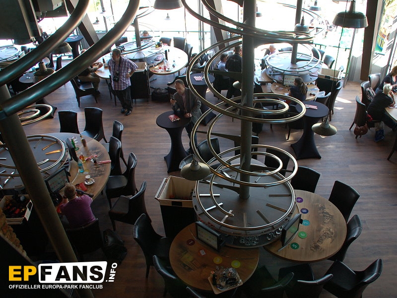 | Konzept: | weltweit erstes Loopingrestaurant im Europa-Park HistoramaSpeisen und Getränke werden über Edelstahlschienen aus der Küche zum Gast geschickt |